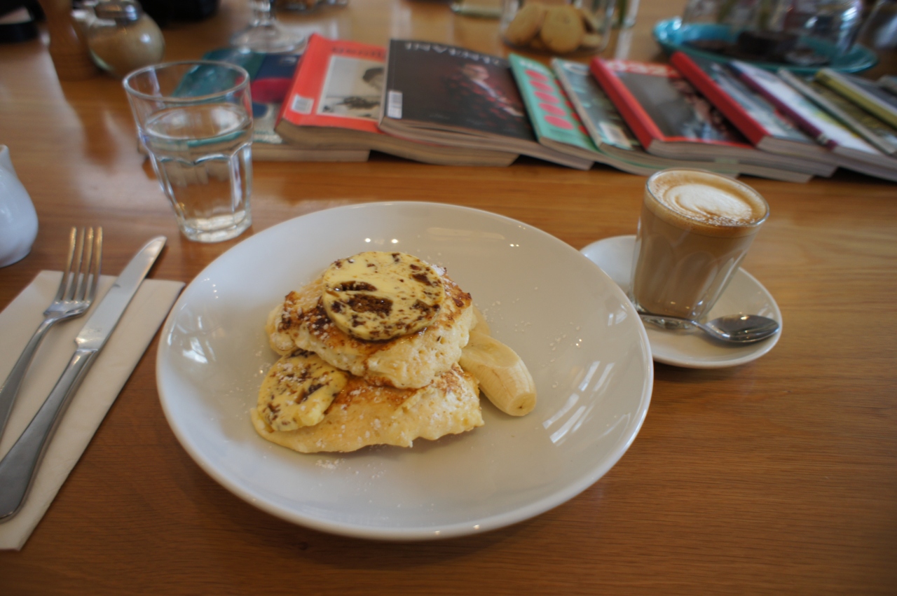 「世界一おいしい朝食」で日本でもおなじみのビルズの本店です。ハイドパークに宿泊していたので地図を見ながら徒歩で行きましたが、迷いながらかなり歩きました。閑静な住宅街で、店構えも、ふつうの住宅風で、行列もしていなかったので、危うく通り過ぎてしまうところでした。店内は、地元のリピーター風の客がほとんどでした。観光客らしきグループもいましたが、中央の大きなテーブルに案内され、リコッタパンケーキとカフェラテを注文。味はかなり濃厚で、すぐに満腹になってしまいました。いろいろメニューはありますが、これ以上は食べられずに帰りました。世界一?という感想でしょうか。