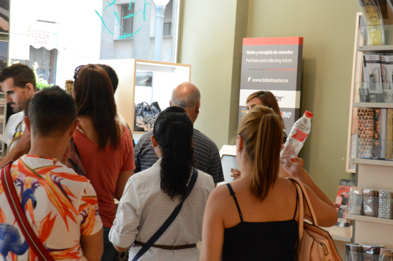 場所はイザベル広場をヌエバ広場方面に曲がってすぐの所にあります。発券機は売り場レジの近くにありますが、店員の方が操作して発券してくれます。