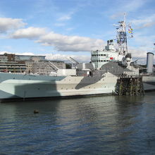 テムズ川のほとりを散策していれば、おそらくは誰しもが、この急に目の前に現れる戦艦にびっくりするでしょう。1940~50年代(第二次世界大戦、朝鮮戦争)の実戦に使用された戦艦だと聞くと血なまぐさいですが、一応、乗船可能な戦争関連の博物館になっております。