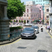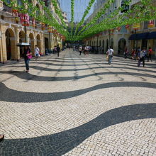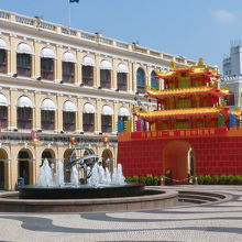 ここセナド広場はマカオで最も有名な観光地で、誰もが訪れる場所ですね。もちろん世界遺産に登録されています。広場の中央にある噴水からは元気よく水がわいています。国慶節の準備でしょうか、中国らしい華やかな飾付もされています。またこの周辺は世界遺産の宝庫、ぐるーと回ってみませんか、西側にある観光案内所へ行くとMAPなども置いています。