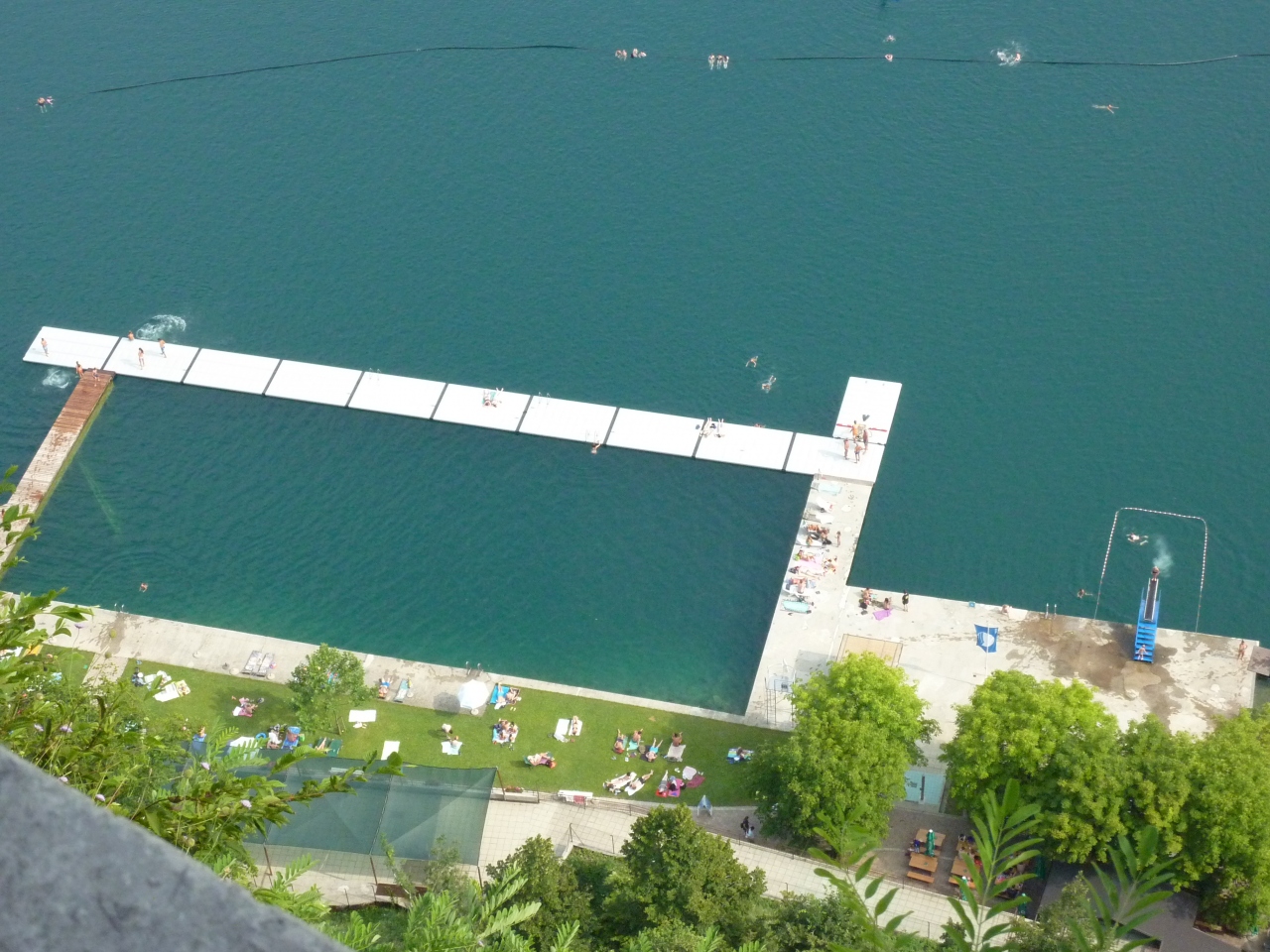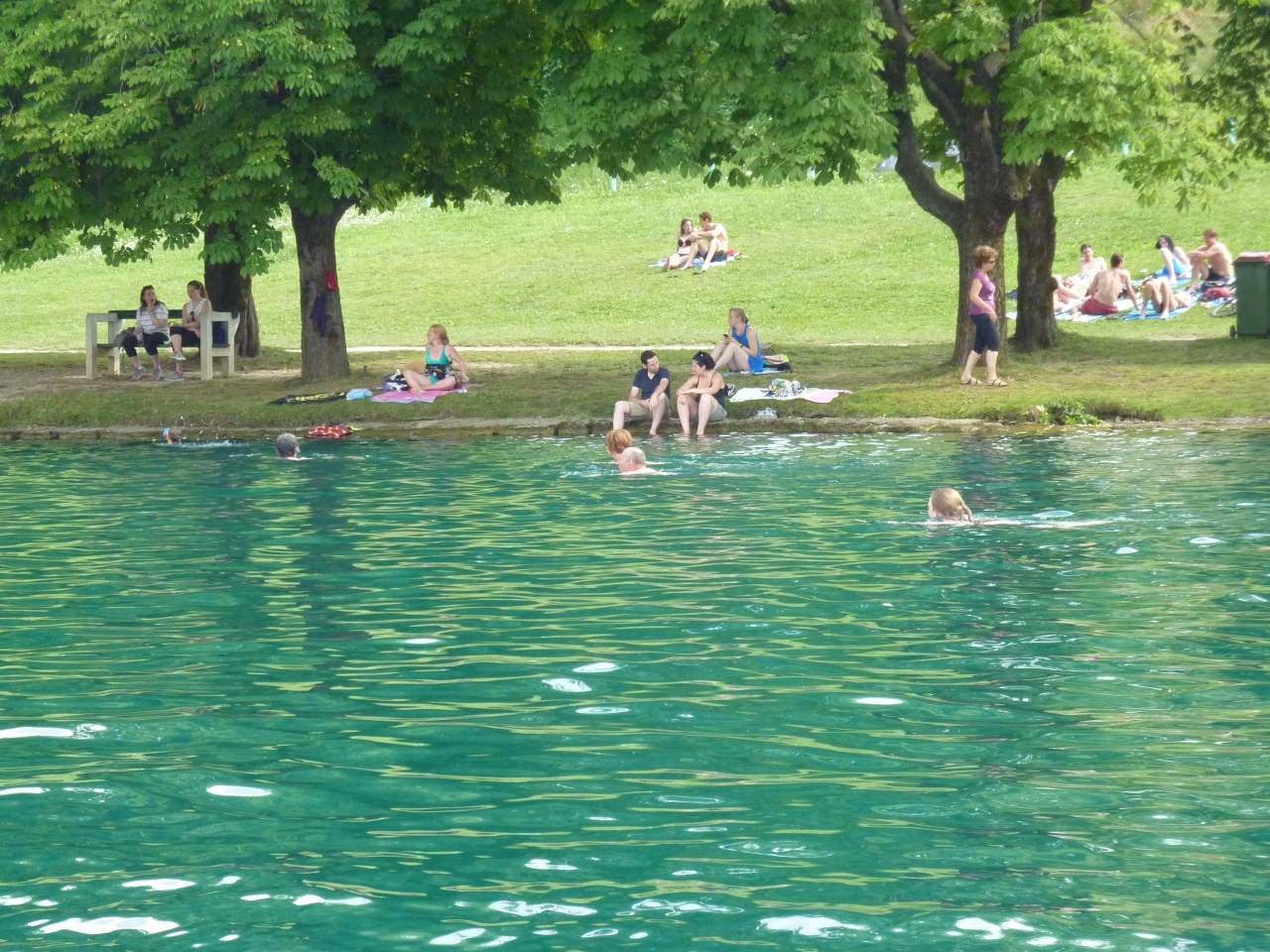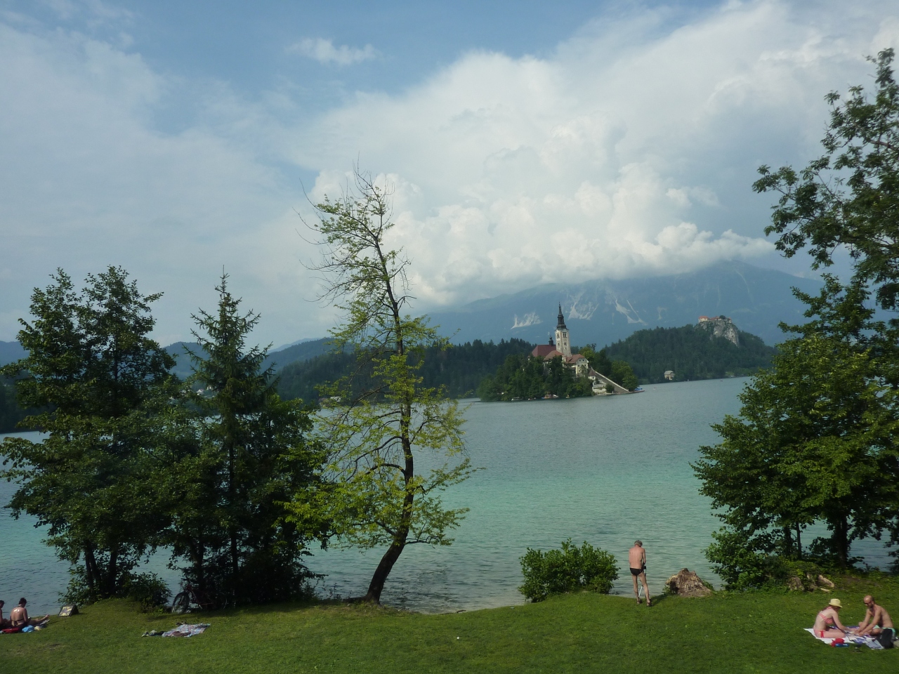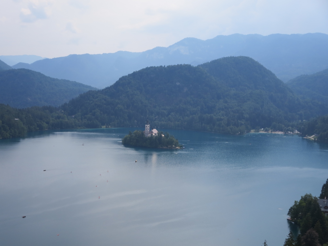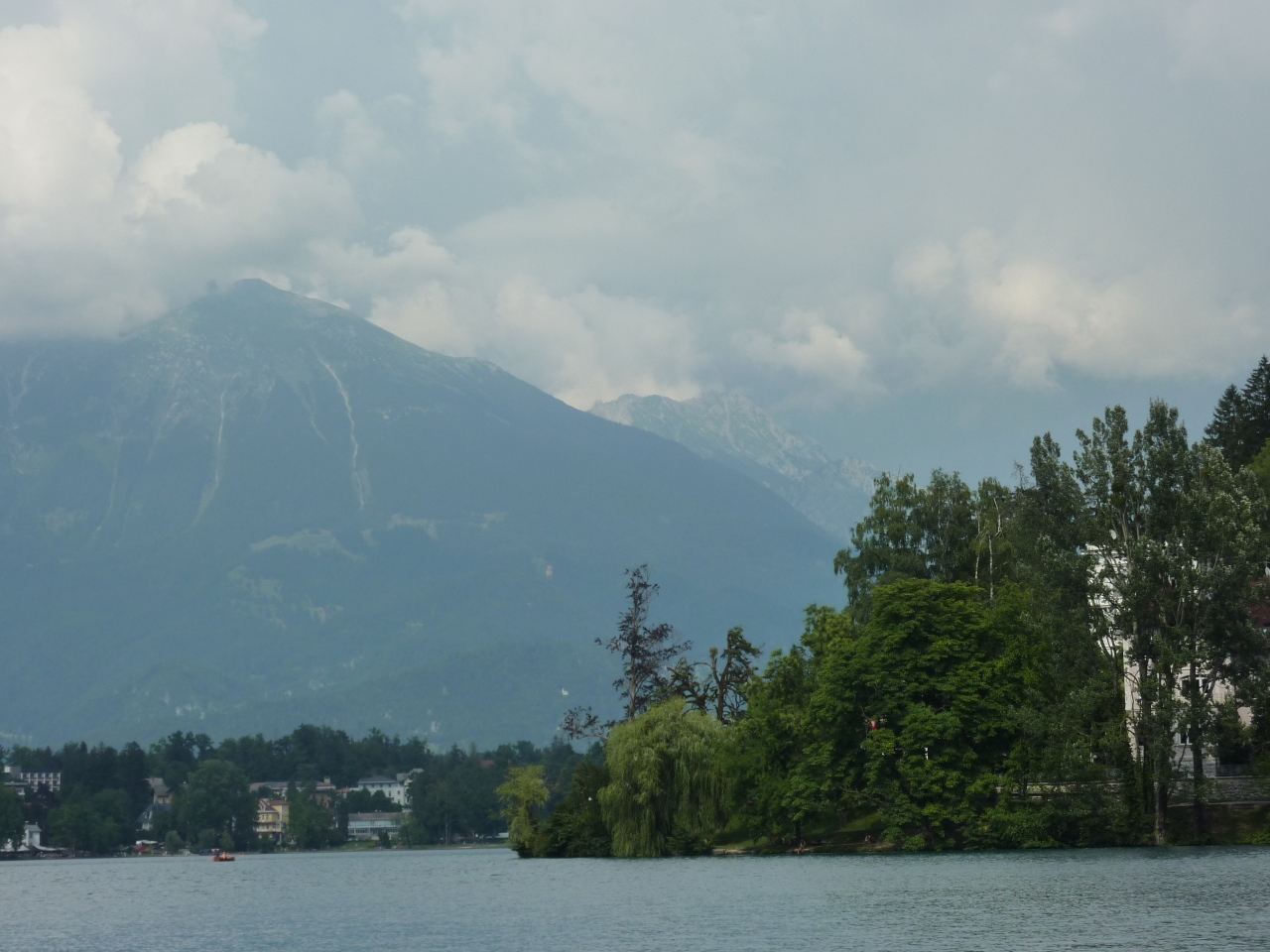 澄み切った湖面にはユリアンアルプスの最高峰、標高2864mのトリグラフ山系が映し出されることもありますが、山の天気は変わりやすく、最高峰は中々姿を見せてくれません。でも標高430mにあるこの湖は周囲約6kmで周回道路もあるので、徒歩、サイクリングでも一周できます。夏場、水温は27℃程度まで上り、湖水の透明度は7m程度あるので、湖畔には遊泳する家族連れ等水着姿で歩き回る姿が多く見受けられます。