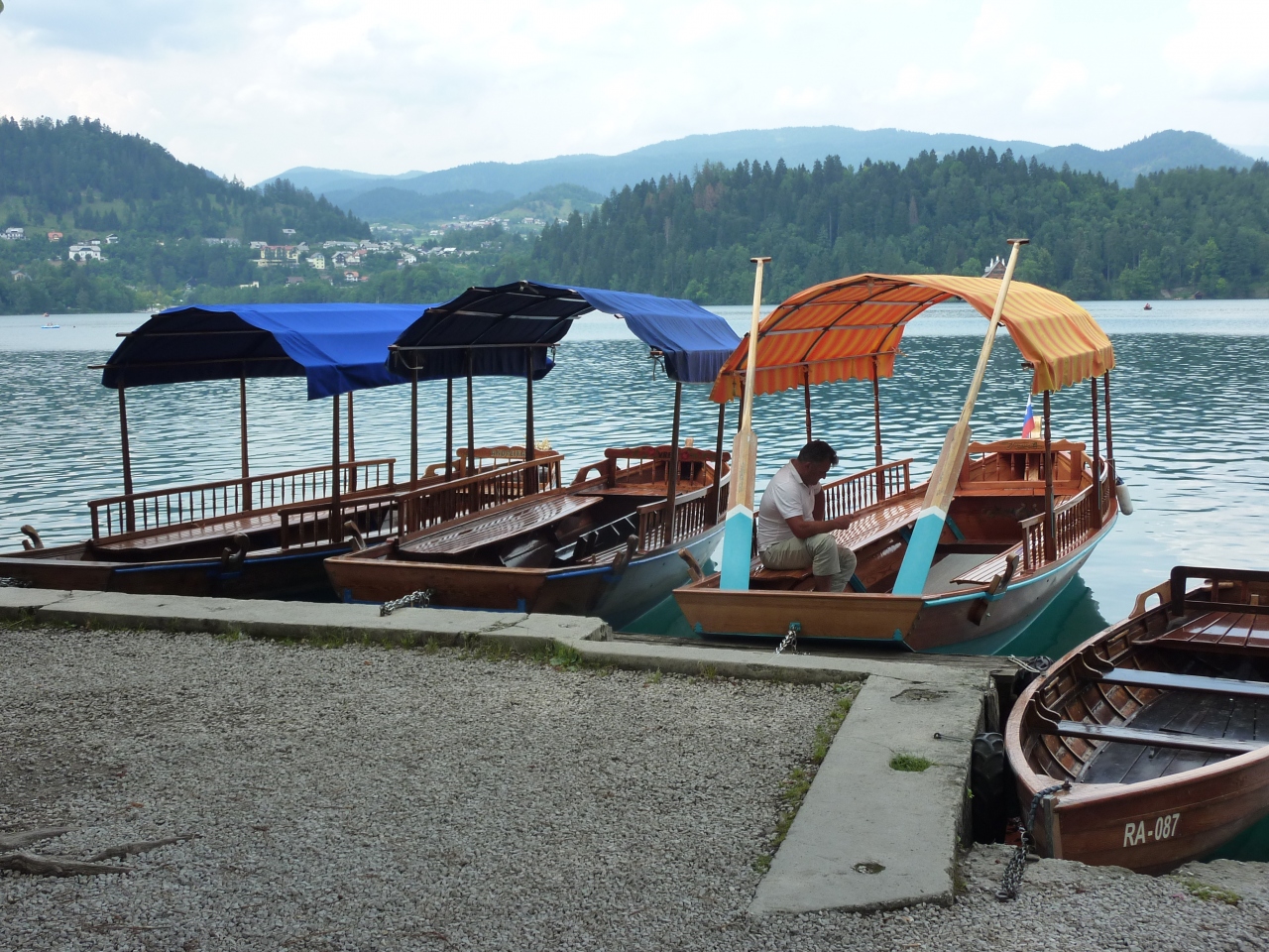 聖母被昇天教会のあるブレッド島には手漕ぎボートで渡れます。このボート漕ぎは世襲で、代々受け継がれています。