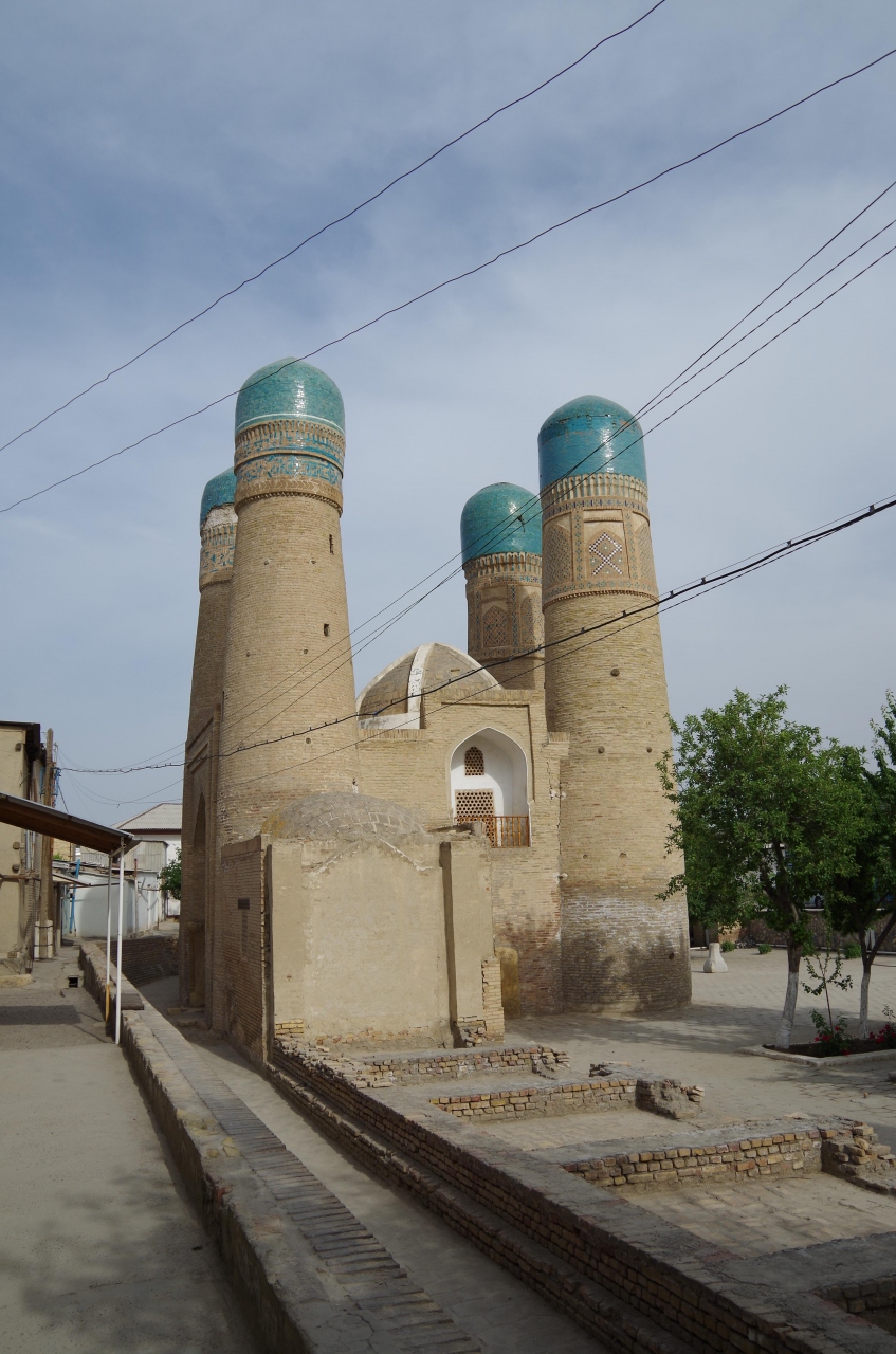 ブハラ歴史地区から徒歩10分ほどの場所、ブハラの人たちが普通に生活している、市街地の中にあります。途中の路地では、地面に座り込んでおばさんたちが話し込んでいました。道も親切に教えてくれます。4本の塔が建っていて、メドレセの門番小屋として建てられものだそうです。有料で上に上がれますが、特に眺めが良いというわけではありません