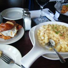 大通り沿いにあるワイワイとしたお店です。オープンカフェになっていて外で食べることもできます。店内はスポーツ番組が流れていて、アルコールもいただけるので結構のりよいお客さんがカジュアルに楽しんでいる感じでした。アメリカンなメニューがよかったのでベタですがマック&チーズとハンバーガーをオーダーしました。ハンバーガーはボリューム満点でパテもジューシーですごく美味しかったです。マカロニチーズも味がやさしくおいしかったです。