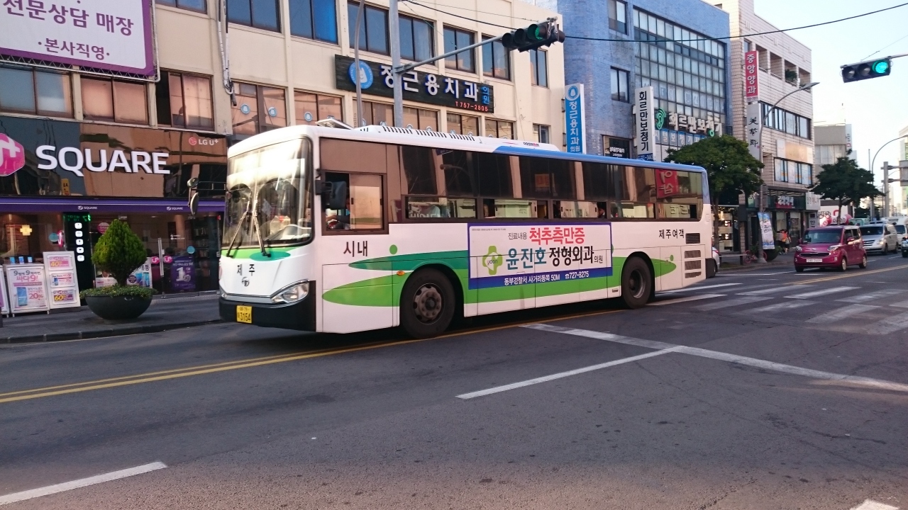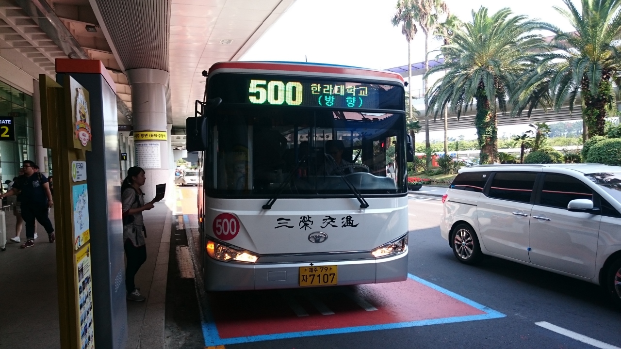 済州島のバスは、市内バス、市外バス、マウル(公営)バスの3種類あり、市内バスは済州市内と西海浦市内の2エリアに分かれます。市外バスは済州市外バスターミナルからの発着が基本で9路線あります。済州市内は意外とアップダウンがあったりするので、バスの利用が便利だったりします。市外バスは、空港と西海浦を結ぶ路線の他、済州島の外郭に沿って回る東回一周と西回一周という路線があり、これを乗り継げば、済州島を一周でき、観光名所を通ります。英語の表示がある場合もありますが、基本的にはハングル表記、韓国語の案内中心なので、上級者向きではありますが、運賃も安いので、観光の際の選択しにいれても良いと思います。