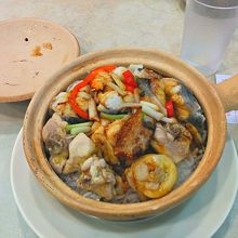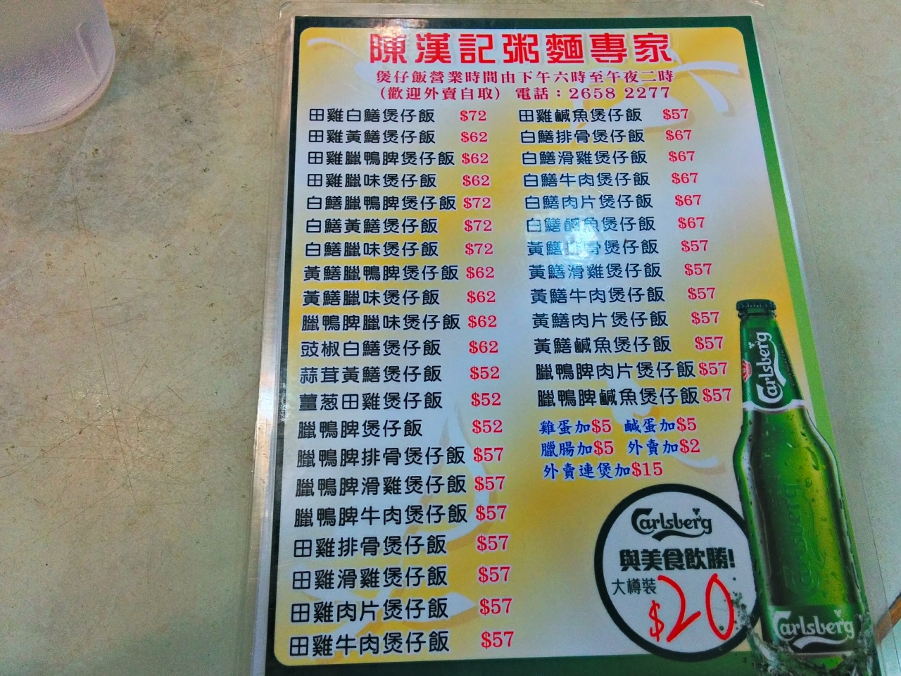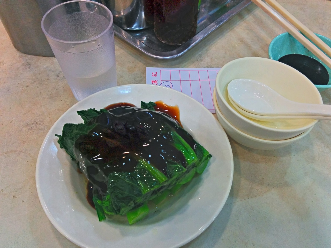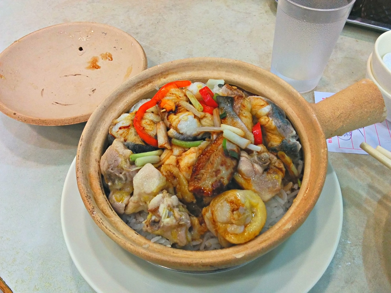 平日夜8時くらいに訪問。店の前には少しだけ列ができていましたが、それほど待たずに中へ入れました。中には円卓があり、自分は一人だったので相席でしたが皆食べたらすぐ出て行くので回転が早いです。油菜と白鱔滑雞煲仔飯(ウナギと鶏肉の土鍋飯)を注文しました。手元のメニューを指差しながらの注文で言葉がわからないでもOKでした。油菜の件で何か聞かれたがユアチョイスオーケーとか適当に答えてたら大丈夫でした。油菜を食べながら待つこと20分、煲仔飯がきました。味はまあまあおいしかったです。2点で83香港ドルでした。この店は煲仔飯専門店ではないので腸粉とかと一緒に食べられるのはいいかも知れません。あとビールもあるようです。
