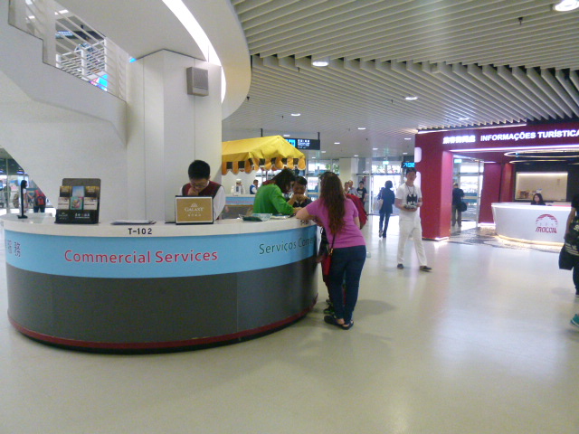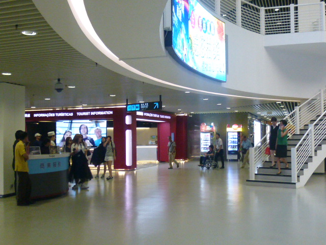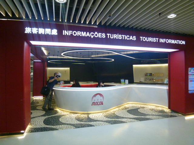 マカオ政府観光局インフォメーションカウンターは、マカオ内に「關閘 (ボーダーゲート)」や「セナド広場」など数ヶ所にあります。ここは「外港フェリーターミナル」ですが到着口である1階の右手にあります。最近できたのでしょうか、以前は気が付ませんでした。赤と白の色彩を用い清潔感をかんじます。もちろんマップやパンフレットは常備されています。旅の始まりは観光案内所からです、ご利用くださいね。