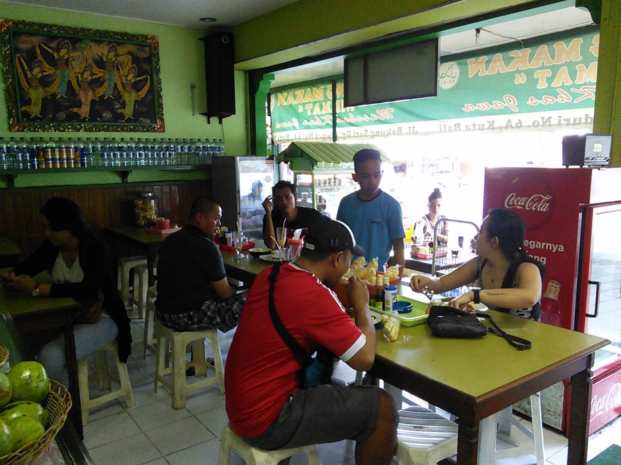 カタコトの日本語を話す店員もいますがオーダーはおかずを指差すだけで済みます。チキンか魚が入ればRp20000~。面倒くさけれはメインのおかずだけ指定し金額を言えば適当に副菜を持ってくれます。チキン、魚抜きの“ベジ”ならRp12000で食べられます。サービスのつもりかもしれませんがおかずをたっぷりと盛るので見た目はあまり洗練されていません。なんか見た目で食欲を失くしてしまいました。味も特にどうというわけではなく普通です。私的には1回行けばいいかなという感じでした。