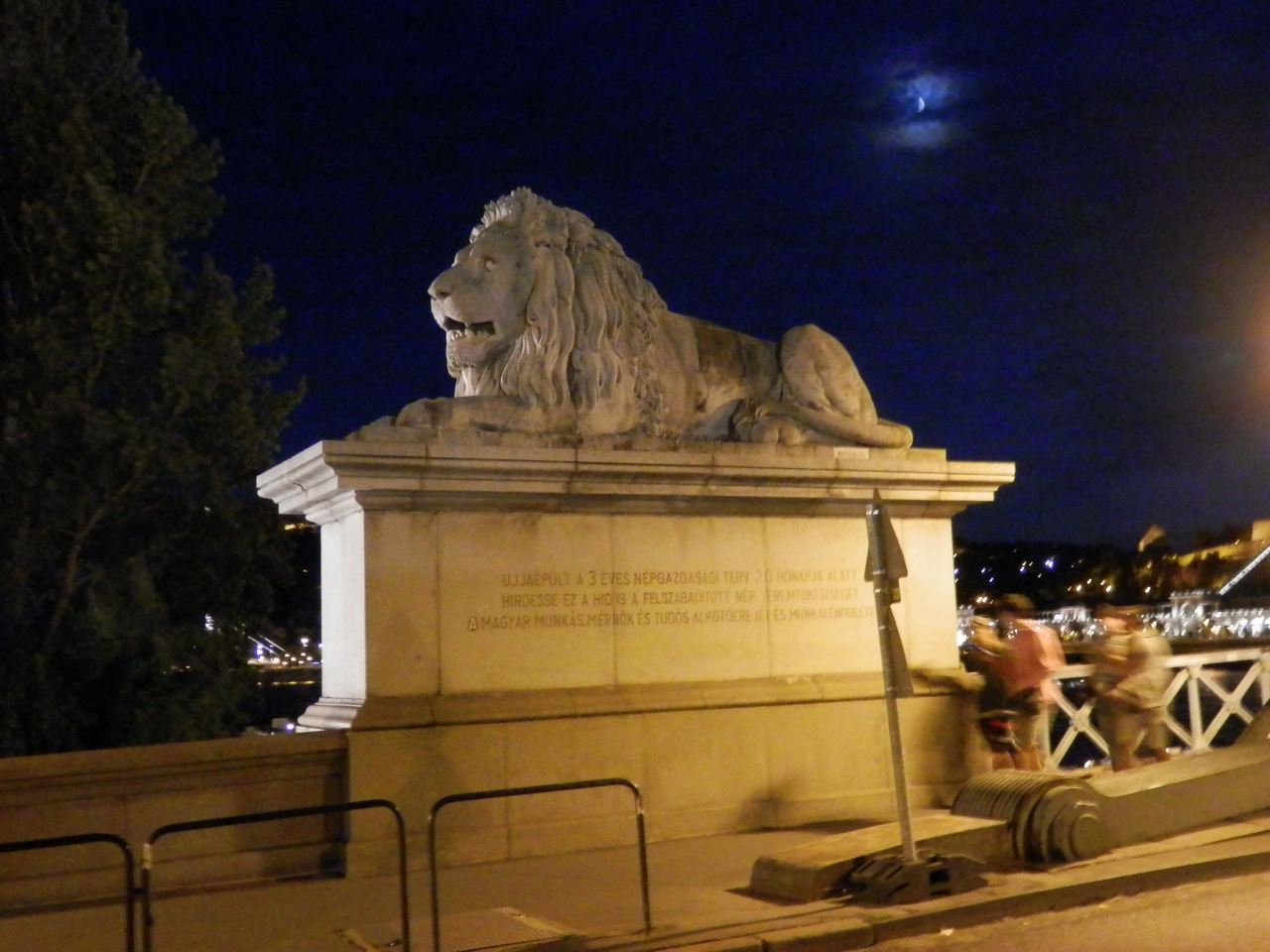 橋の両端の左右に大きなライオンの銅像が2匹づつあります。