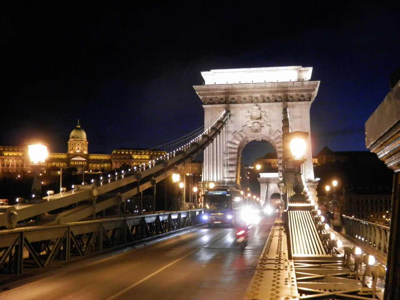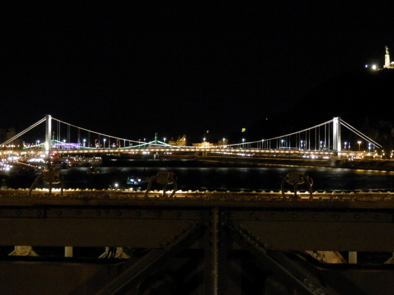 ハンガリー・ブタペスト・ドナウ川にかかるくさり橋・夜はライトアップされて綺麗です。
