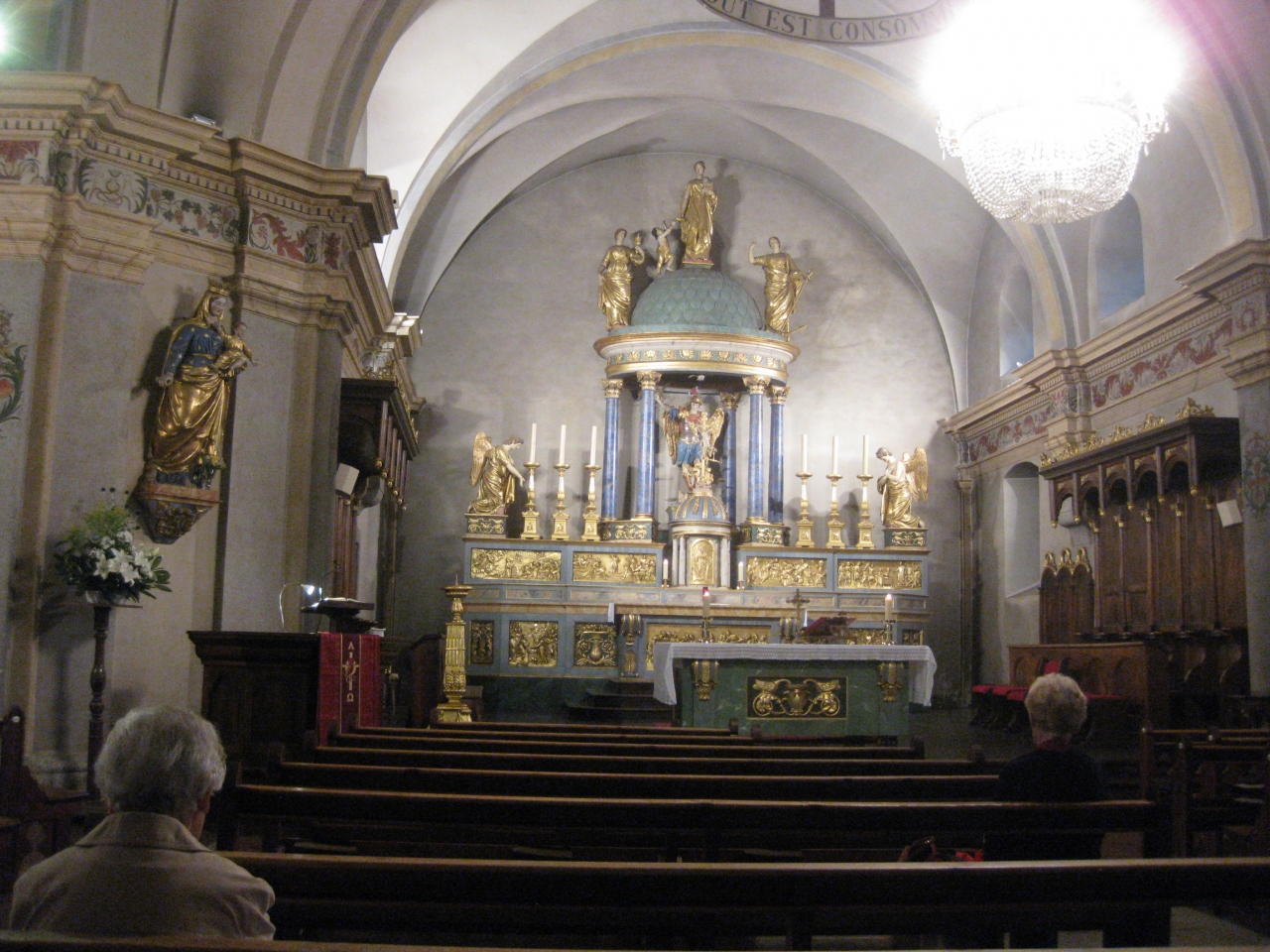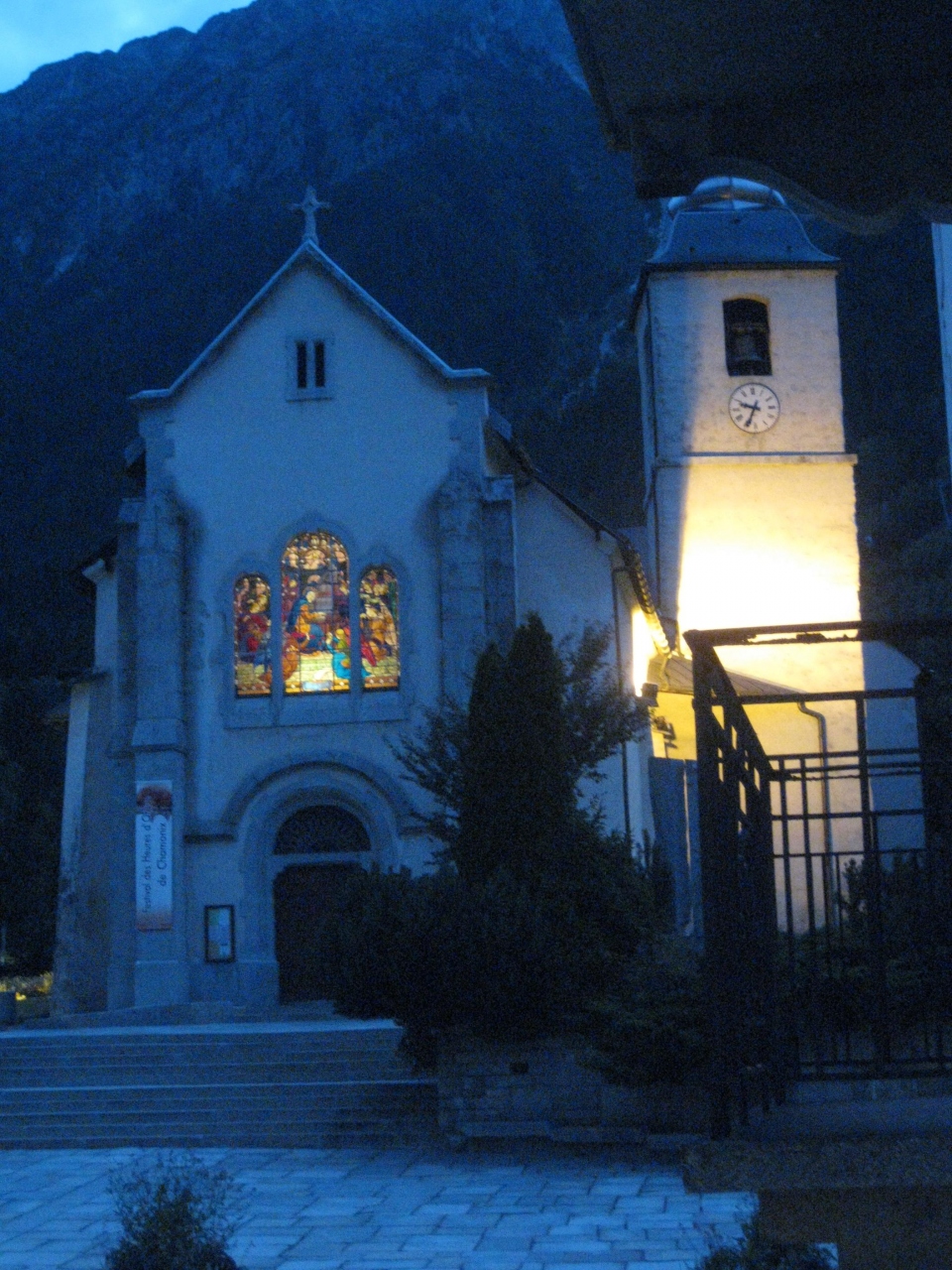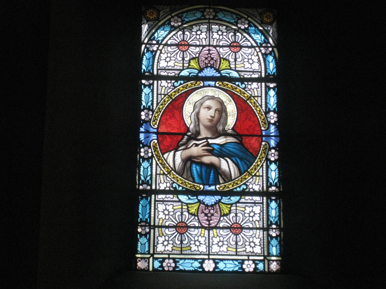 面白いのはステンドグラス。バラ窓のステンドグラスが中から見られないので不思議だなと思っていたら、夜になると中の灯りを外側から見るステンドグラスになっていました。