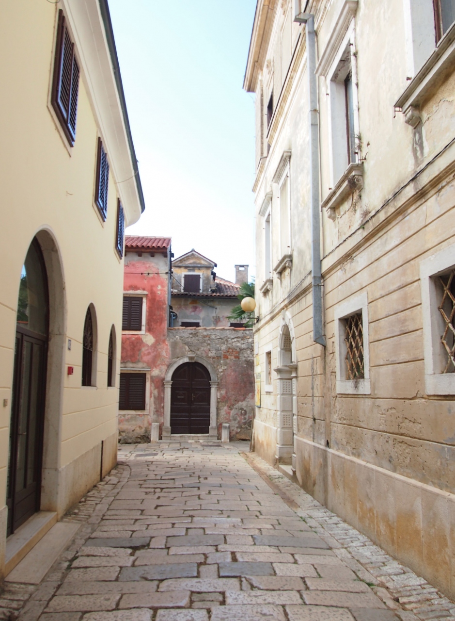 モザイク画で有名なエウフラシウス(Eufrazijeva)聖堂の門前通り。Decumanus通りとはちょっと趣が違った静かな通りになっています。古いロマネスク建築のCanon’s House もこの通り沿いにあります。