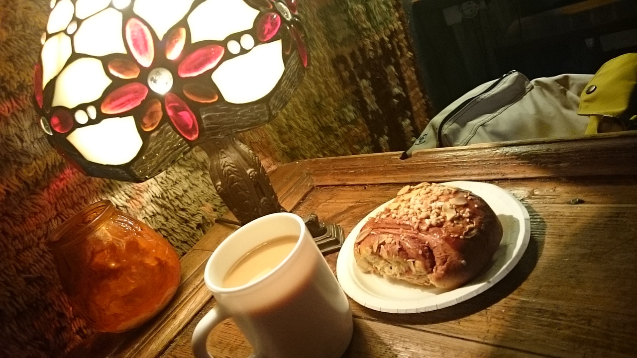 焼きたてのシナモンロールとコーヒーを