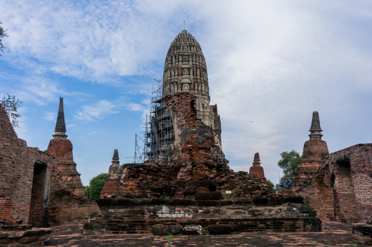 クメール様式寺院なのですが.....おいらが行った時はちょうど改装工事中みたいでメインの仏塔は骨組みに囲まれておりました。