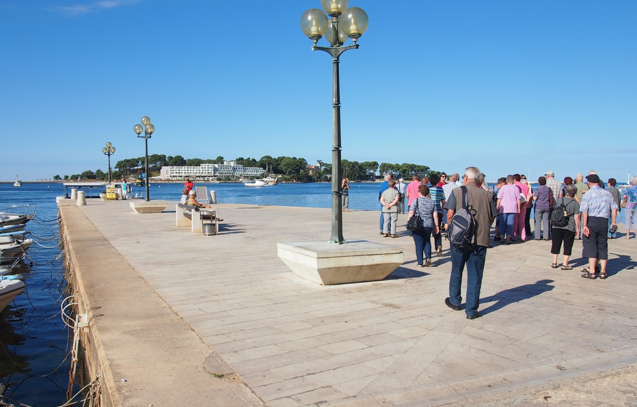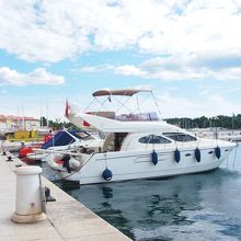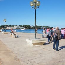 アドリア海対岸のベネチアからプラ、ロビニ等のイストラ半島の他の港町も結ぶ船もあるポレチュ港。港の沖に波を遮る島がある為か波静かな港ですね。バケーションシーズン後半だったせいかあまり人混みも無くゆっくり海沿いを散策できました。