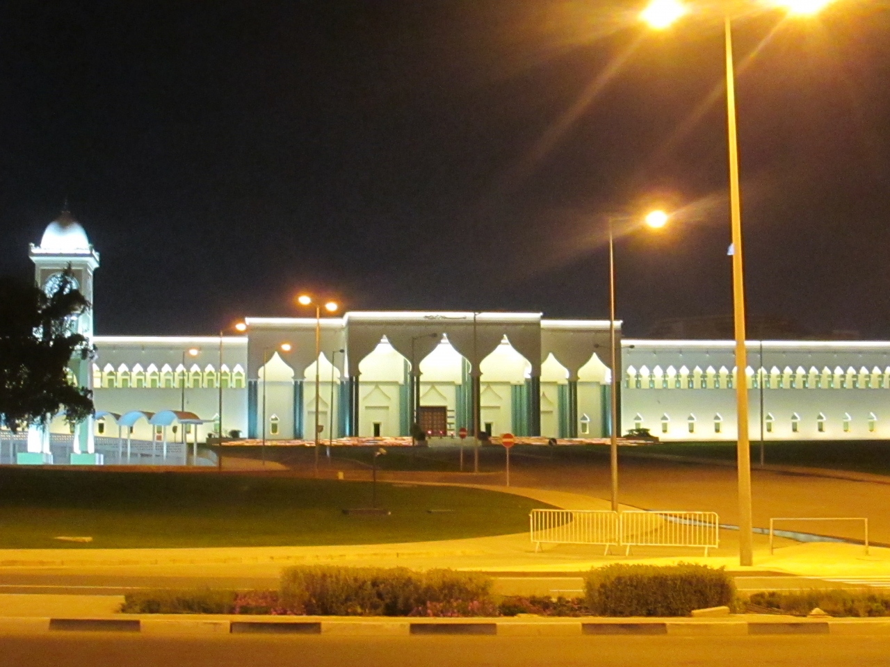 首長の館はドーハの中心地にあります。スークから歩いて散策しているとひときわきれいに輝く建物があります。簡単に近くまで歩いていける雰囲気ですが、警備員がおり、近くにいこうとすると止められます。夜に訪れましたが、館がきれいにライトアップされていて美しかったです。