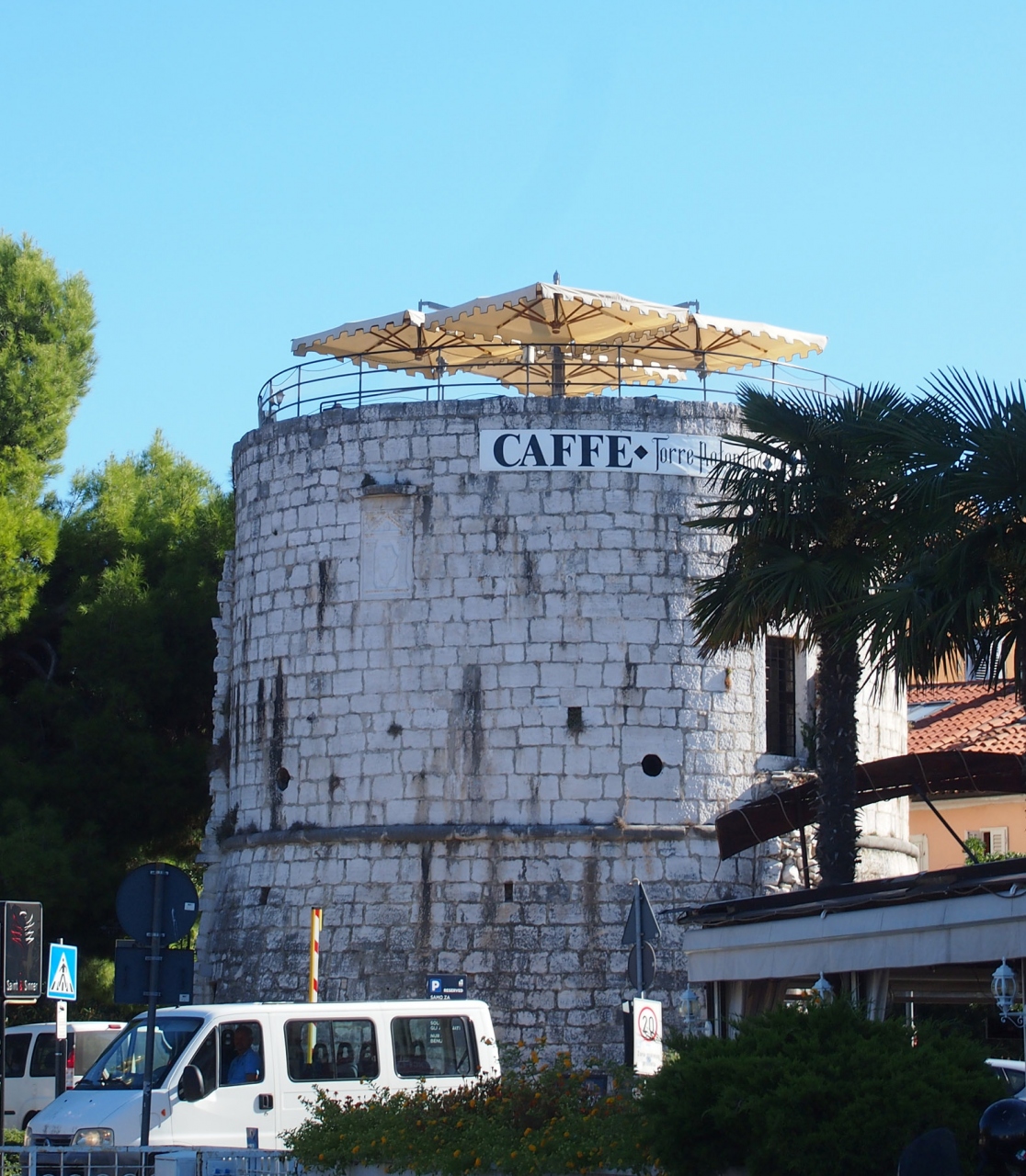 サウスディフェンスタワー(South Defense Tower)とも呼ばれるラウンドタワーはもとはポレチュの街の防衛の拠点だったらしいです。主にオスマントルコの侵入を防ぐためにベネチアによって建設されたそうです。現在はカフェとして営業しています。