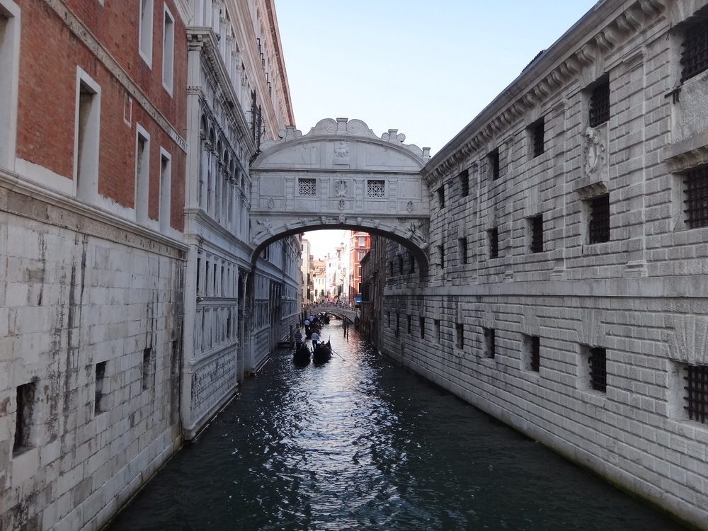 ためいきの橋は、左側のドゥカーレ宮殿で判決を受けた囚人が、右側の牢獄へ投獄される時に通った橋。