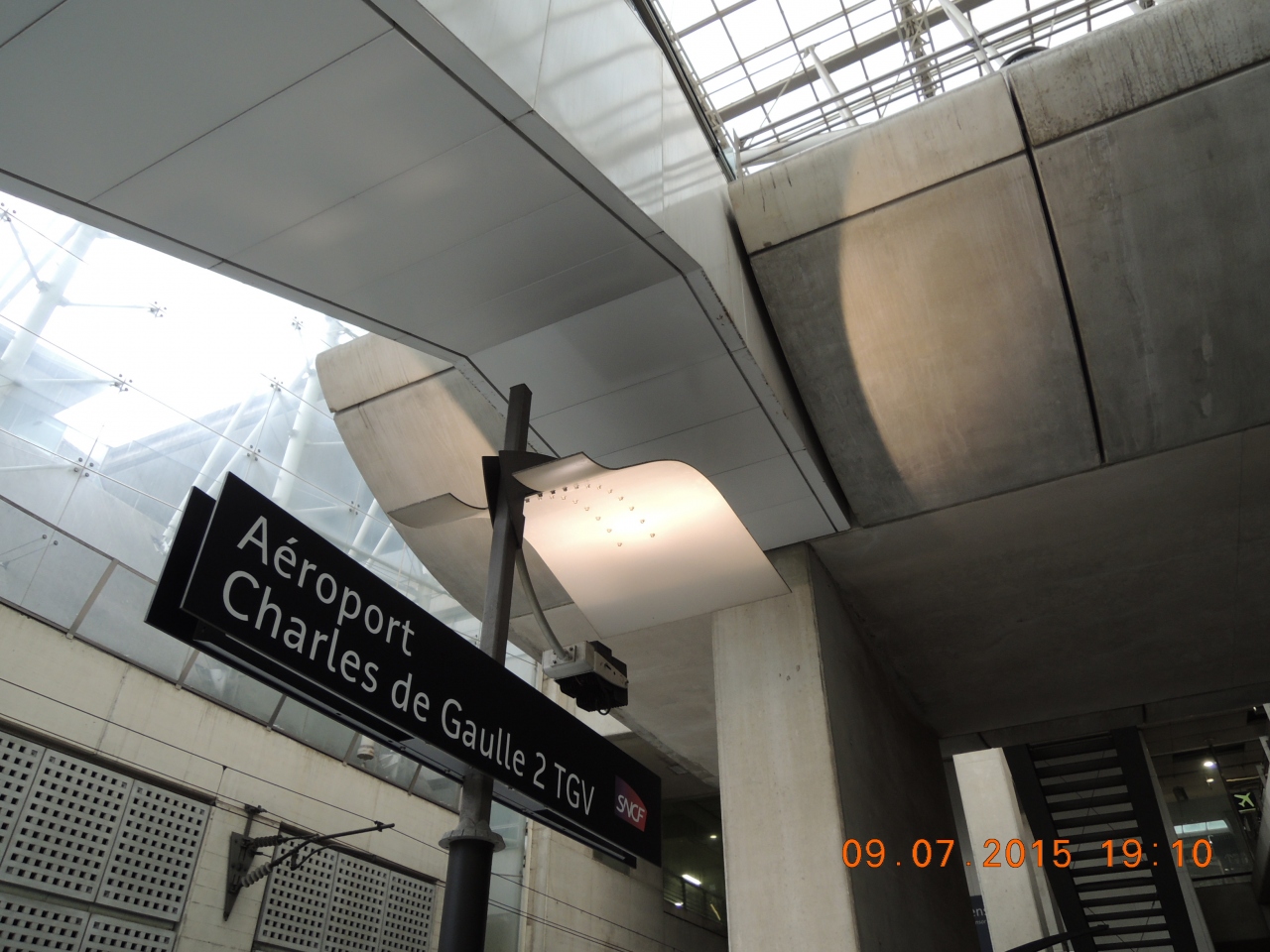 TGV乗車の為CDG空港駅への移動は到着ロビー出口を出てから建物内を案内板にそって行けば簡単に着きます。