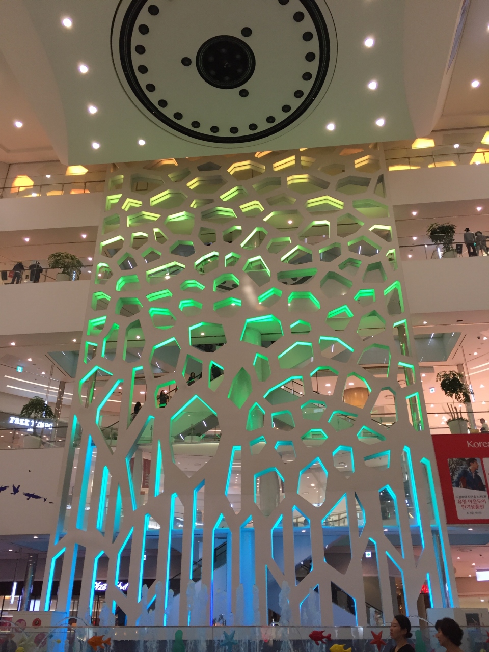 1階には噴水があって毎0時には高いところからレーザー光線を照らした噴水ショーが楽しめます。