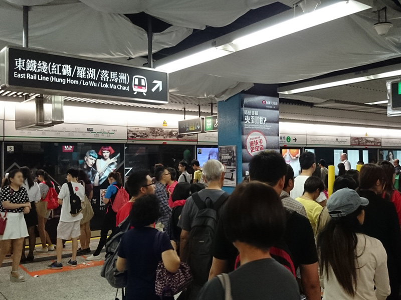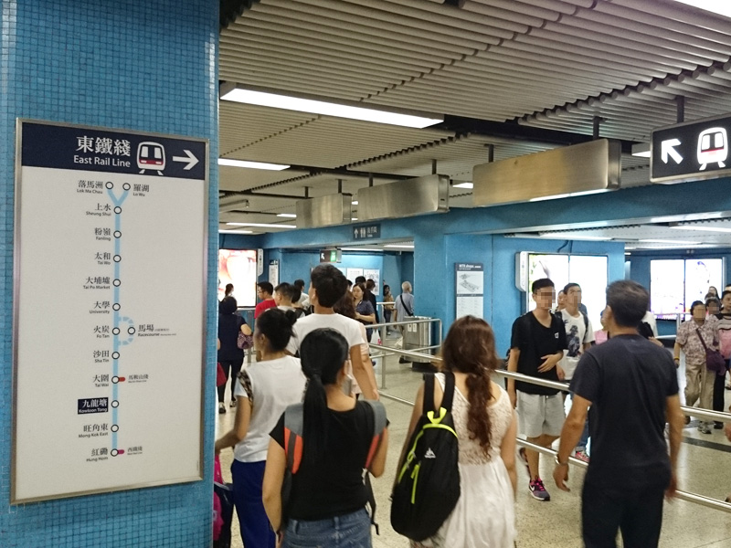 旺角から深センへ行く際に利用しました。MTR観塘線から中国との境界にある駅(羅湖および落馬洲)へ行くMTR東鉄線への乗換駅です。観塘線は地下ホーム、東鉄線は地上ホームなので乗り換えに多少時間がかかりますが、エスカレーターがあるのでそれほど歩きません。