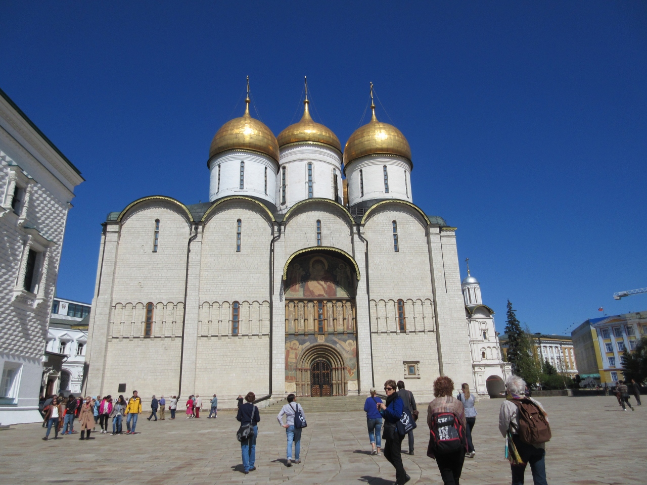 聖堂広場はモスクワで一番の観光地・クレムリンの中にある大きな広場で広場には大聖堂が面していて、ロシア正教の建物群を堪能する事ができるので、まずはここから観光のスターとです。。クレムリンの中でもお勧めの記念撮影スポットではないでしょうか。