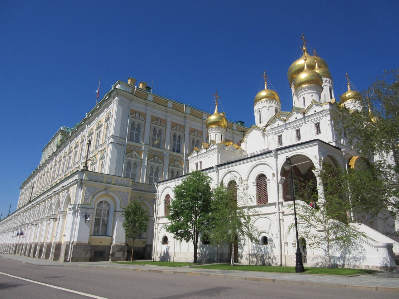 大クレムリン宮殿は聖堂広場の先にあるモスクワ川沿いにある細長い建物の宮殿になります。外装は白と黄色を使用した神聖な雰囲気のある建物です。宮殿内部は豪華絢爛であり、その高級感に驚かされました。もちろん、写真撮影は禁止でした。