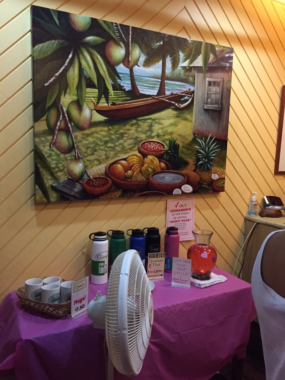 アラモアナSC山側のバス停から56・57・57Aのバスで行くとカイルアタウンまでは40分前後で着きます。バス停名「Kailua Rd + Opp Oneawa St」で降車 5分程度歩けば「Cinnamon'sRestaurant」です。マクドナルドを左側に見ながら次の角で左折、突きあたりを右折、左側には人魚のカワイイ看板が出てる「muse room」があります。