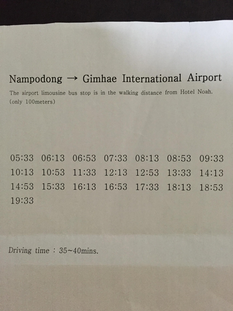 フェニックスホテル南浦洞前には1時間くらいかかりました。