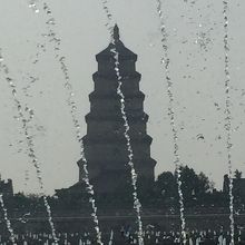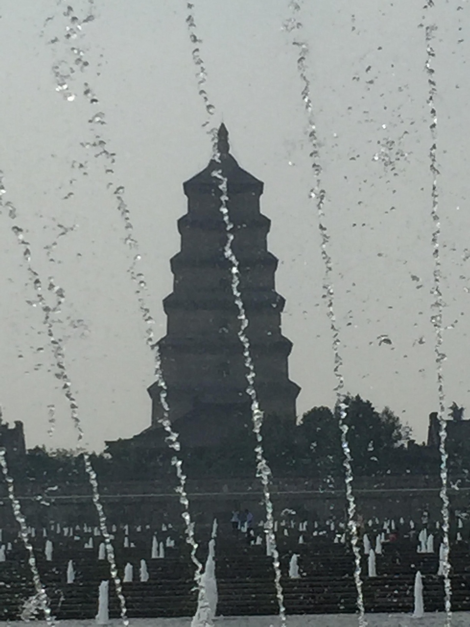 ヒルトンホテルのクラブラウンジで,半日の観光プランを考えていたら、係の人が声をかけてきました。その人は,西安に勤めて,三年ほどだそうです。大雁塔と小雁塔のどちらの方をじっくり訪れるべきかということになりました。彼は、「率直に言うと小雁塔だ」と言いました。大雁塔は、観光客のものだと言うことです。時間があまりなかったので、大雁塔は,近くまで行って写真を撮っただけにしました。近くの噴水は、きれいでした。
