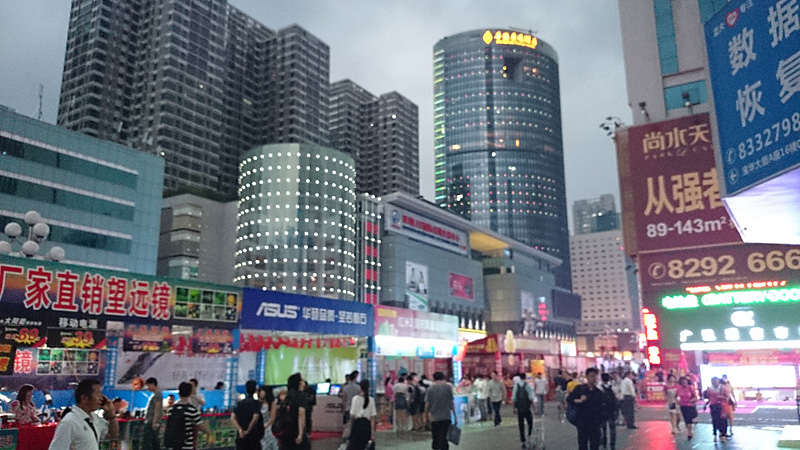 深センの秋葉原、華強北路への最寄り駅です。A出口を出て左折したところが華強北路です。道路の両側にはいくつもの電脳ビルが建ち並び、その中にたくさんのショップが入居しています。規模は秋葉原をはるかに超えるものなのでとても全部見きれませんが、デジモノ関連に興味のある方は一度行ってみることをおすすめします。