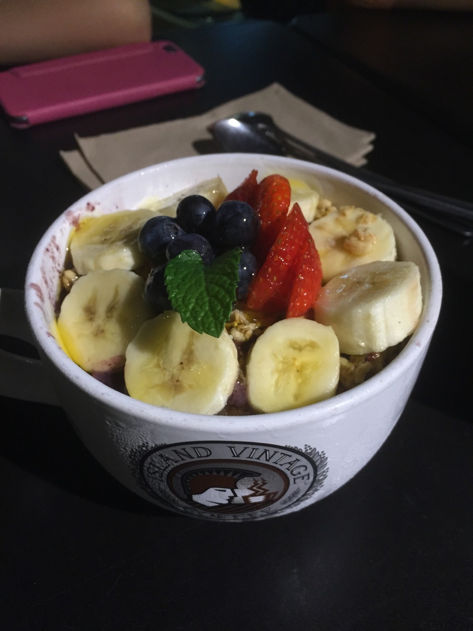夕食後に訪れました。店内の席は空いていて、コーヒー(無料クーポンをどっかのサイトから事前にダウンロード)とアサイーボウルを頼みましたが、あっさりしていて独特のアサイーの風味もハチミツとフルーツで私は気になりませんでした。気になる友達もいましたが。。。量はボリュームがあって、夕食後ということもあってか、3人で1個で十分でしたが、ご飯抜きでも1人1個は多いと思います。次回はポケボウルも美味しいらしいので、ポケボウルも一緒に食べてみたいです。