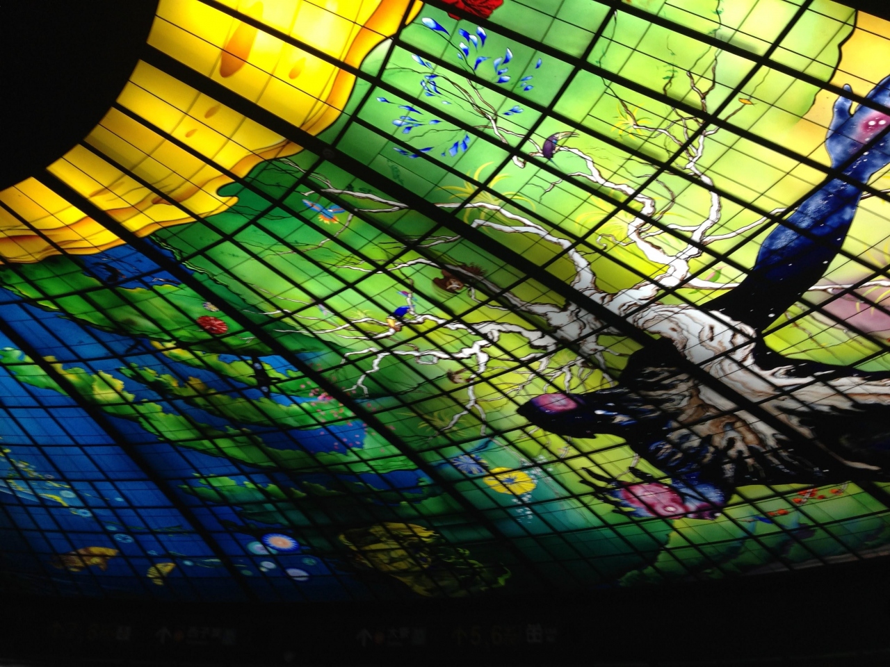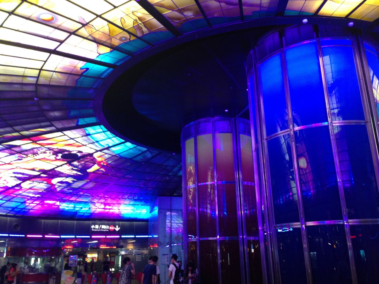 改札を出たところの広場に2本の柱が立っていて、この柱とその上の天井というか円蓋がステンドグラスで飾られて、噂に違わず非常に美しい駅です。
