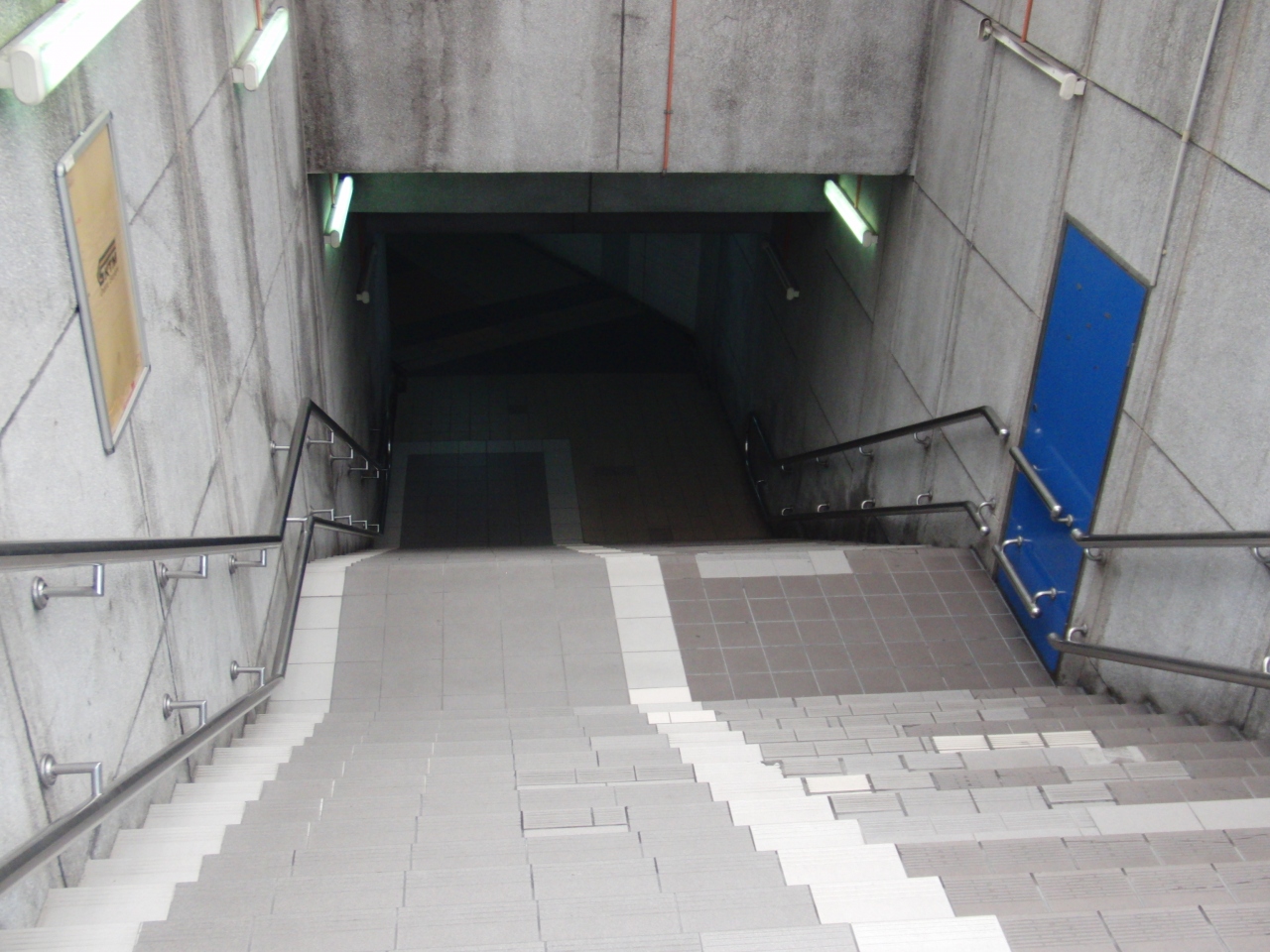 この建物の前の駐車場の脇に、地下道への入口があるので、暗くて危ない感じですが、ここを通れば、向かいのマレー鉄道事務局ビルへ渡れます。