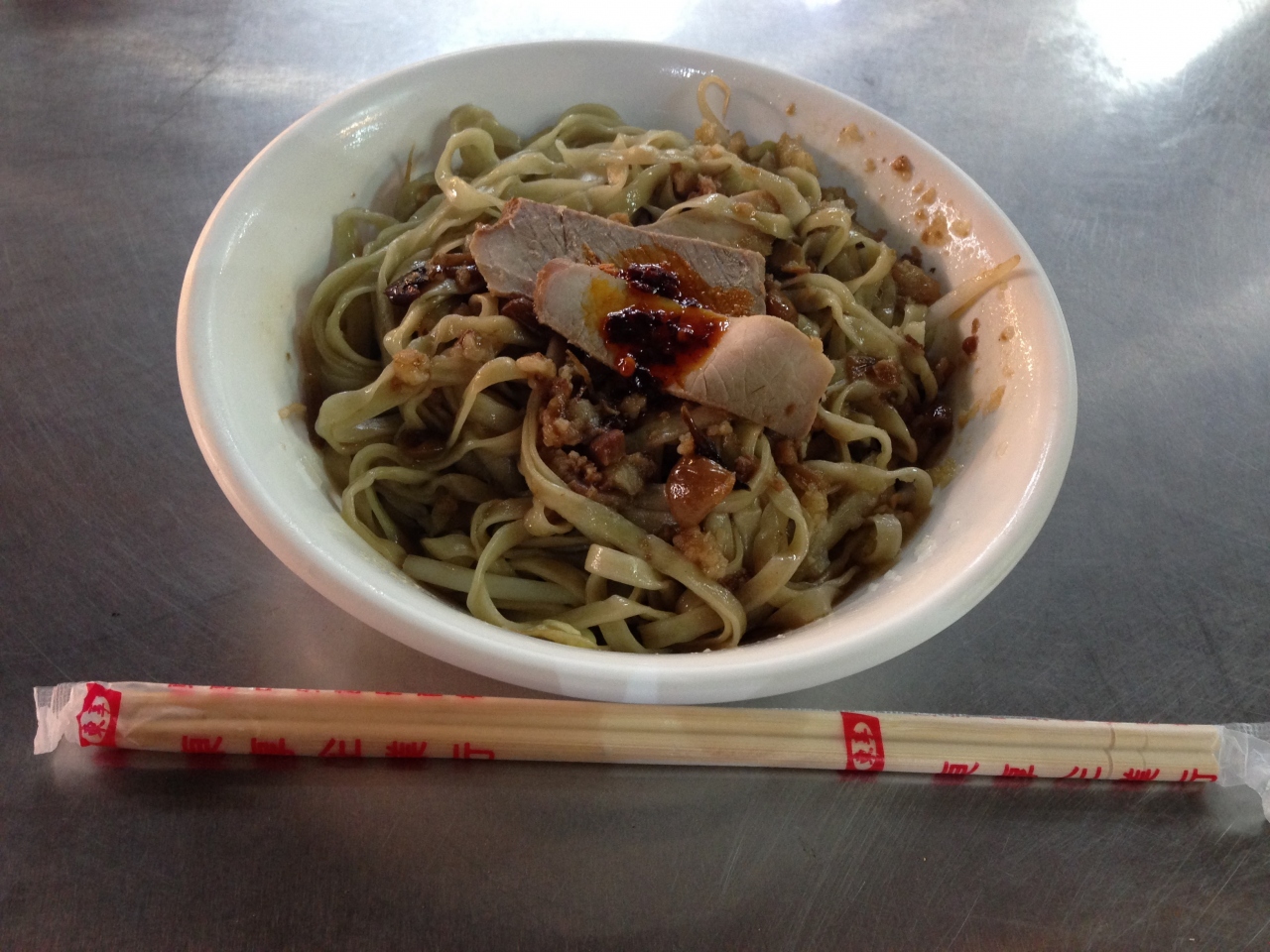 私は東から入って、西の端まで歩いて食べたいものを決めようと思っていましたが一番最後の西の端近くで見た意麺に飛びついてしまいました。40元、大体150円でした。他にも粥とか胡椒餅とか美味しそうなものがたくさんありました。
