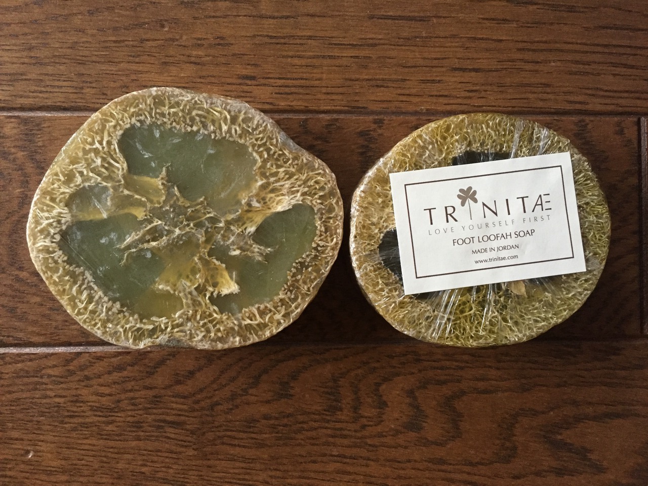 私がここで購入した、石鹸が練りこんであるヘチマの石鹸は、ボデイ用とフット用があり、石鹸もレモンバーム・オリーブ・オレンジの3種類。3JOD~。