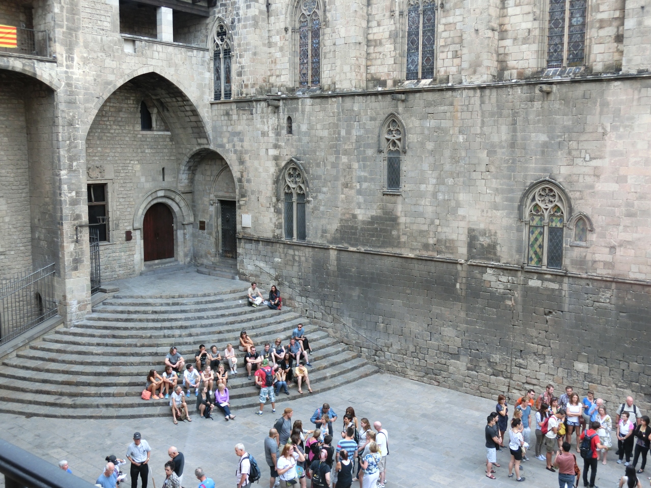 ここにある四分円の階段はコロンブスが新大陸発見の報告をするためイザベラ女王に謁見するために上った階段で、歴史的場所なのです。