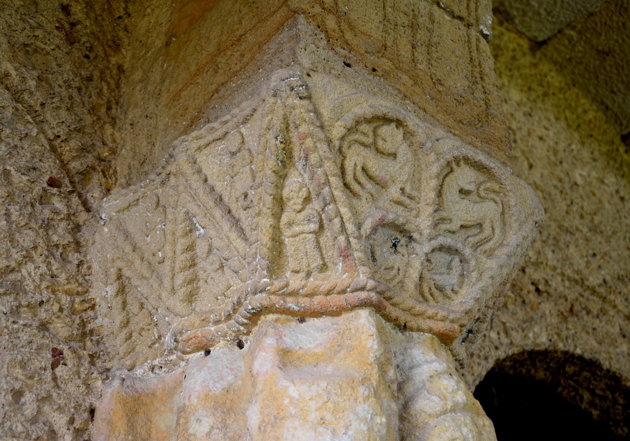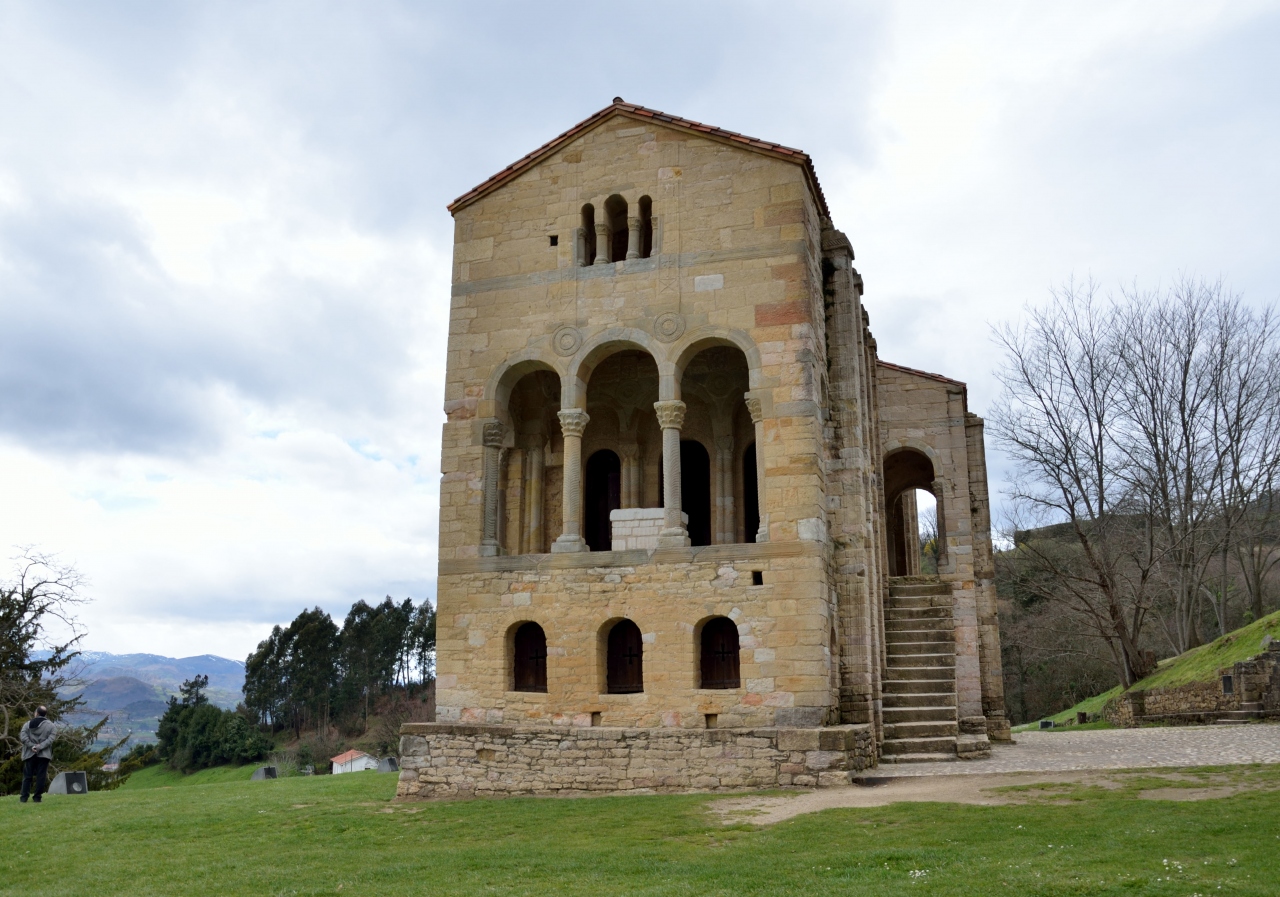 アストゥリアス王国の建造物群として世界遺産に指定されている建物のうち、オビエド郊外の山の中腹に2つの小さな教会があります。いずれも9世紀に建てられた、プレロマネスク様式の教会です。山を登って行って上の方がサン・ミゲル・デ・リーリョ教会、下にサンタ・マリア・デル・ナランコ教会があります。サン・ミゲル・デ・リーリョ教会の近くには駐車場がないので、路側にしばらく車を駐めて外観だけ見て回りました。下のサンタ・マリア・デル・ナランコ教会の近くには整備された駐車場があります。案内の時間が決まっているので、それまでは中に入れず、教会の周辺でしばらく待ちました。展望もよく気持ちの良い場所です。案内してもらった教会は、長方形のシンプルな構造です。案内者の説明がありましたが、言葉がわからず、それでも素朴で良い感じの教会でした。