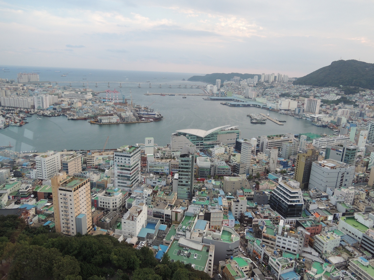 もともと、龍頭山公園がちょっと小高い丘になっていて、その上に建てられたタワーの上からは、釜山の港が一望できます。