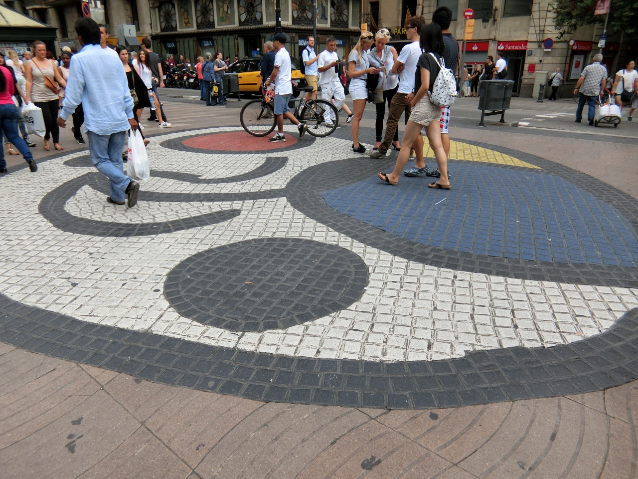 通り沿いにはサン・ジュセップ市場やリセウ劇場などの名の知れた場所やミロのモザイクもあって観光客で溢れています。