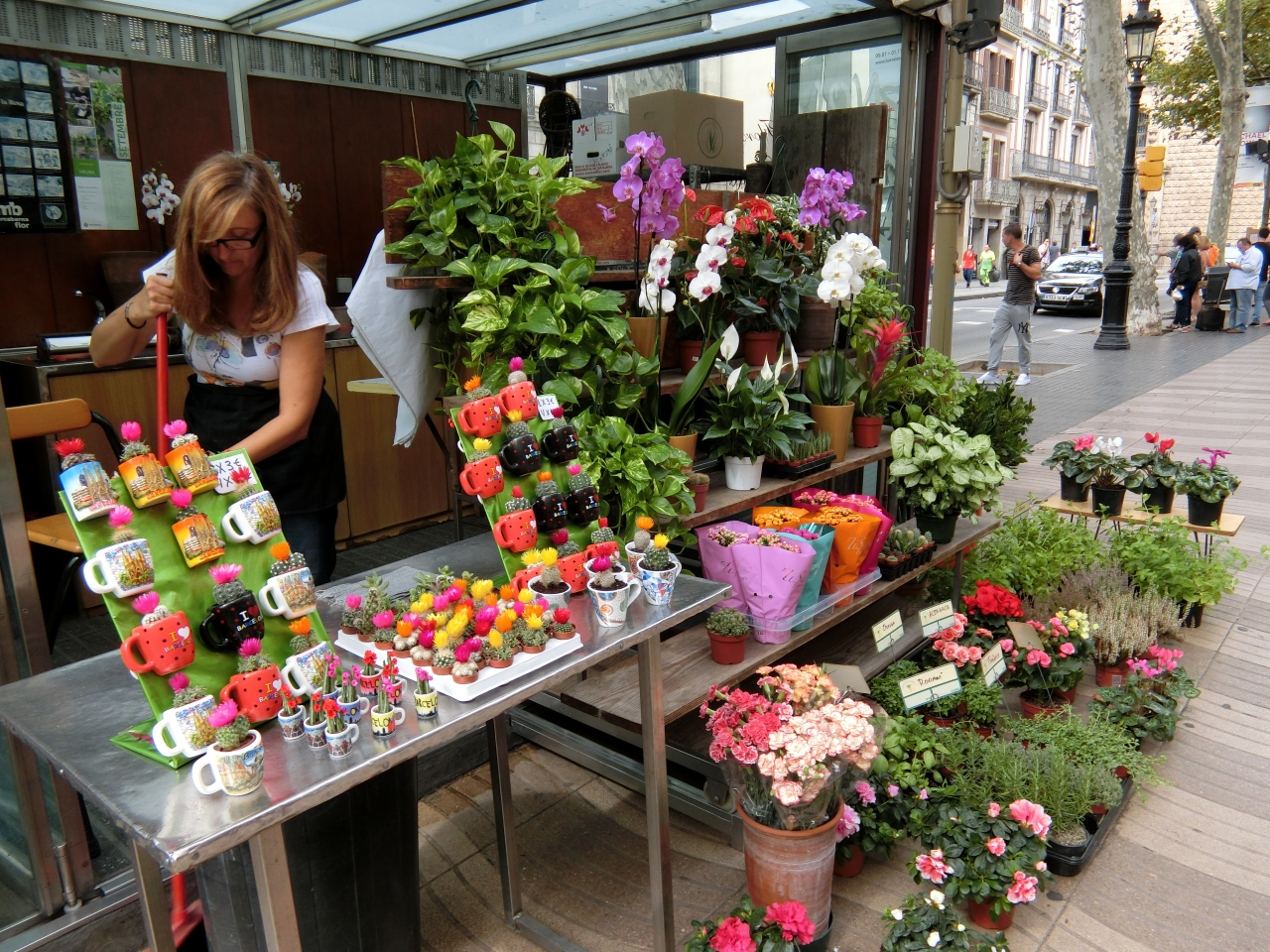 カタルーニャ広場から南へ下る旧市街の大通りです。通りの両側には多くの店があり、通りにも花屋や土産物が出店を出していました。