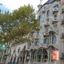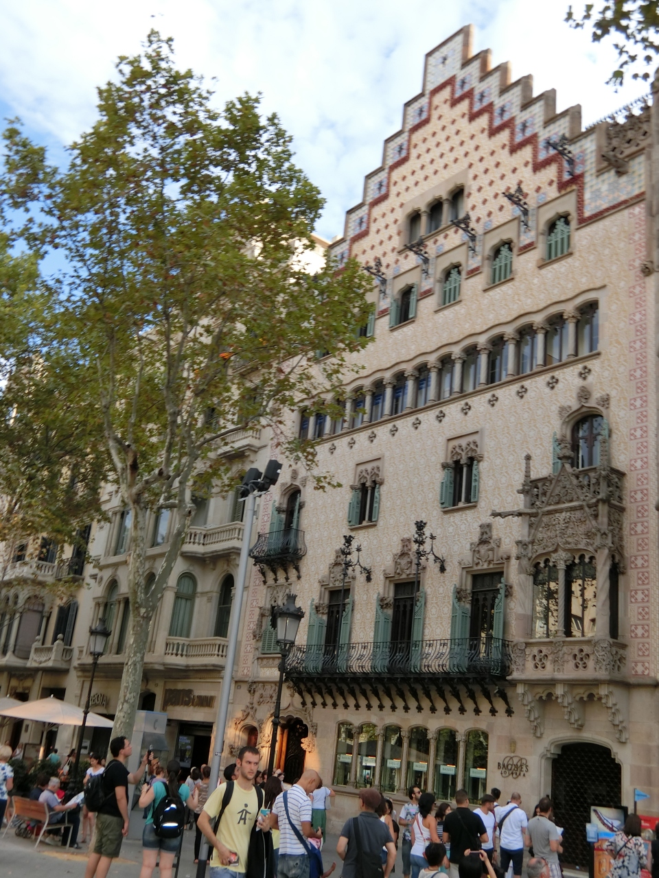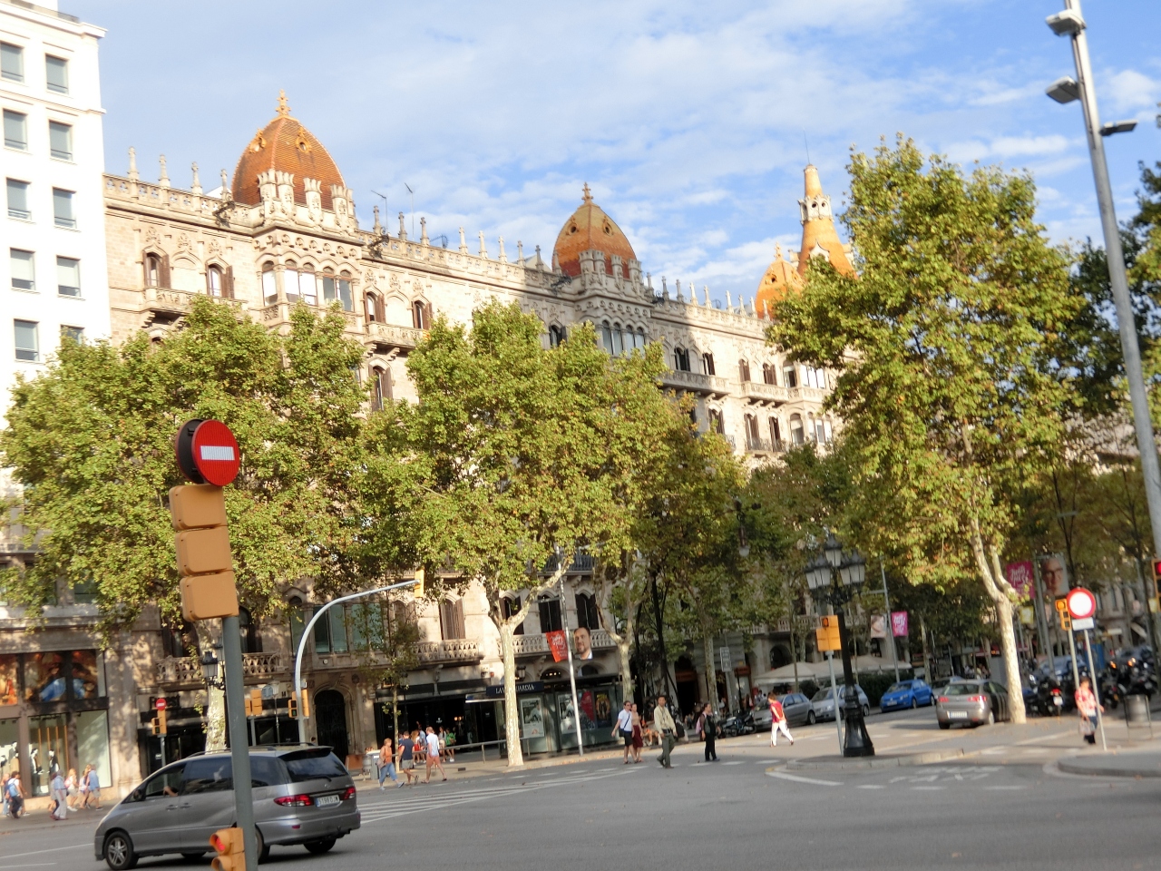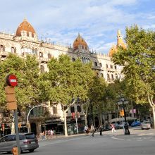 カタルーニャ広場から北に伸びる通りです。道の両側には高級ブランド店やレストランが並び、その中にモデルニスモの建物が点在し、緑の街路樹が続いています。