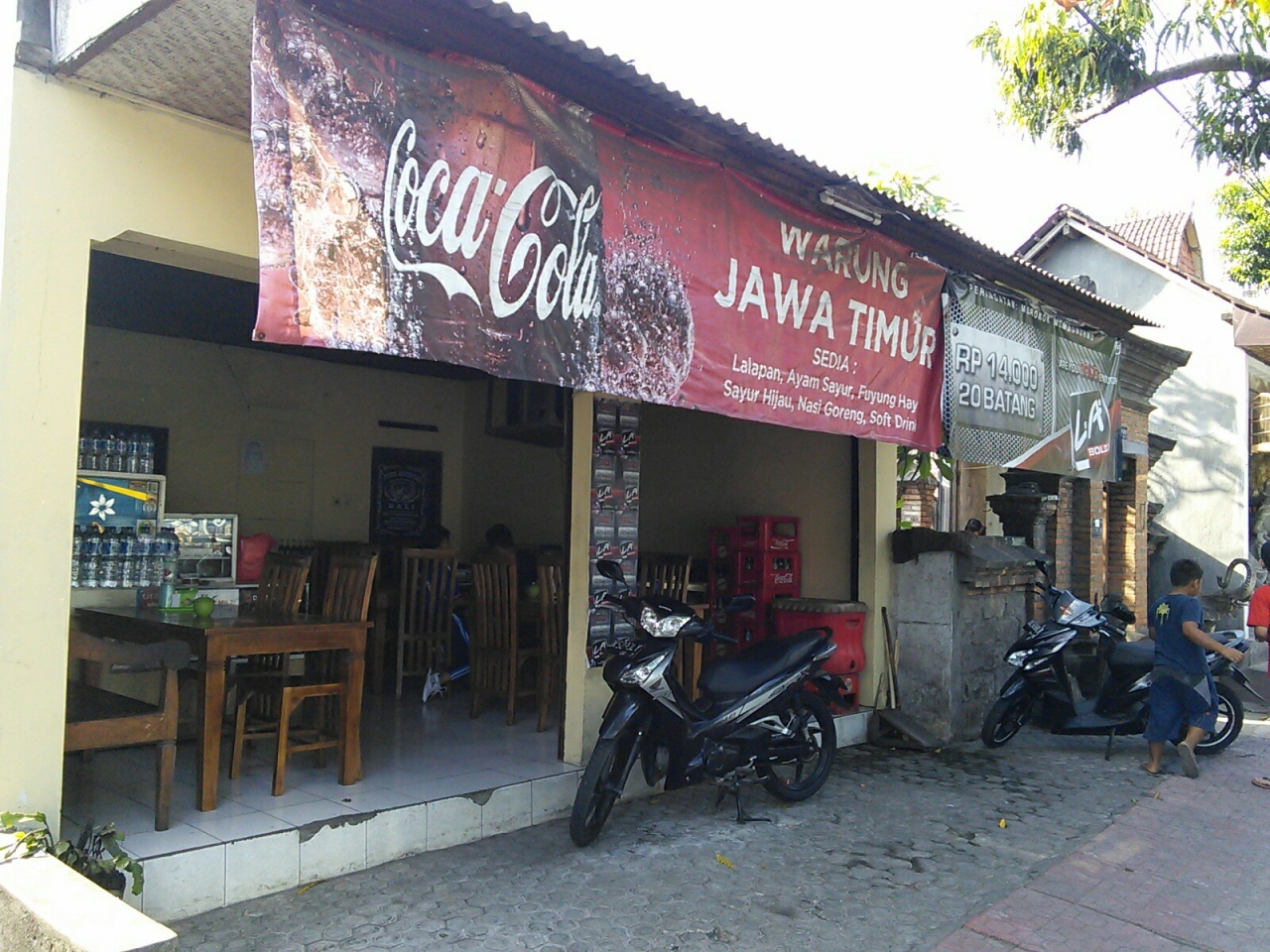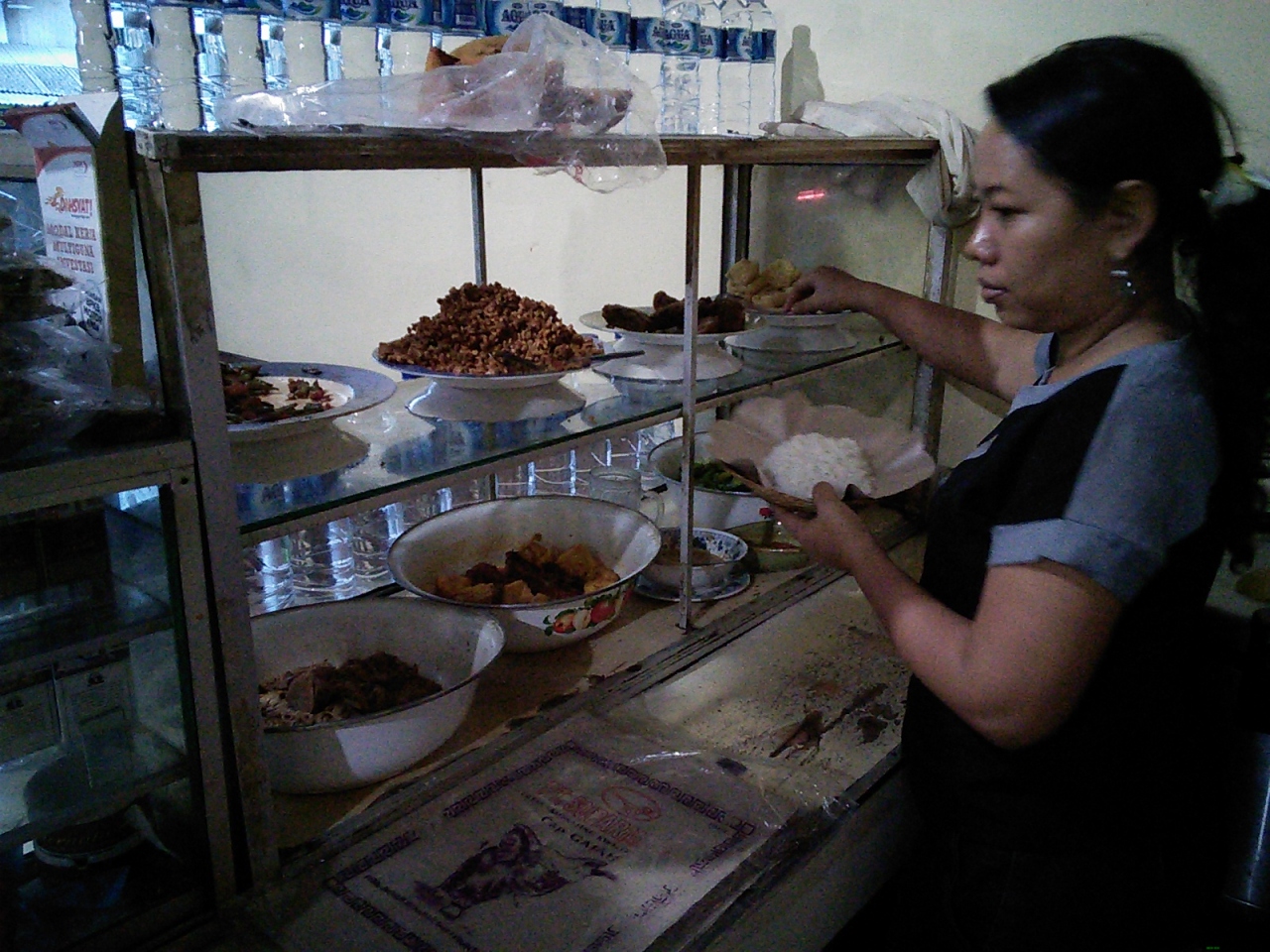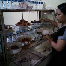 旅行者エリアからやや離れていますがその分ローカル感溢れる激安ワルンです。ローカルワルンではナシチャンプルはRp10000でも食べられますが値段を聞くとRp20000とかRp15000とか言われますがこれは豪華バージョン。この店は初めからRp10000、メニューがありちゃんと書いてあります。そういう点では優良店と言えると思います。しっかりとアヤムゴレンも入っていておかずも満載、これがRp10000で食べられるなら大満足です。他のメニューも驚きの値段です。ナシゴレン、ミーゴレンはRp7000~。いずれも卵焼き付き。ナシゴレンスペシャルはRp8000、レギュラーとの違いはライスの方にも卵が入っていていること。味は値段イマイチでした。