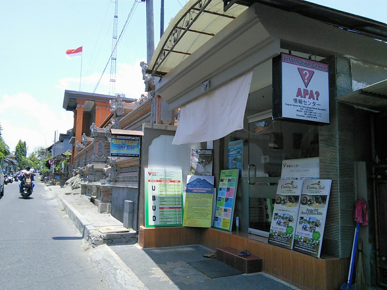 日本語が超堪能なワヤンさんが経営過するインフォメーションセンター。もちろん観光パンフもあり、日本語でいろいろな質問に答えてくれます。各種ツアーも主宰していますが日本語ガイドが含まれているせいか料金はやや高め。しかし他の得体の知れないツアー会社よりは安心できると思います。オフィス内には彼の子供が2人もおり面倒を見ながら業務中、さながら幼稚園のようでした。