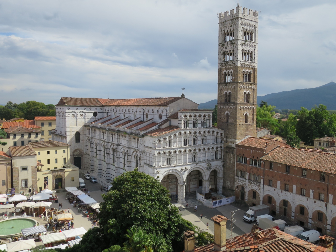 大きな色大理石の洗礼盤の周囲は考古学の発掘現場となっていて、見学可能です。この教会は鐘楼もあり、階段を登らなければなりませんが、高いところから見るルッカのドゥオモは非常にきれいに見えます。