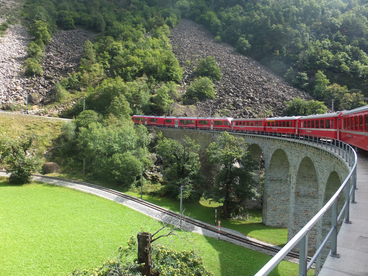 ティラノからサンモリッツまで、ベルニナ線の普通列車、それも、その最後尾につけられる無蓋車での旅を楽しみました。快晴の上に列車も混んでいなく、次々現れる絶景に合わせて、右に寄り、左に寄って、写真を撮りまくる旅になりました。列車も景色も楽しめました。
