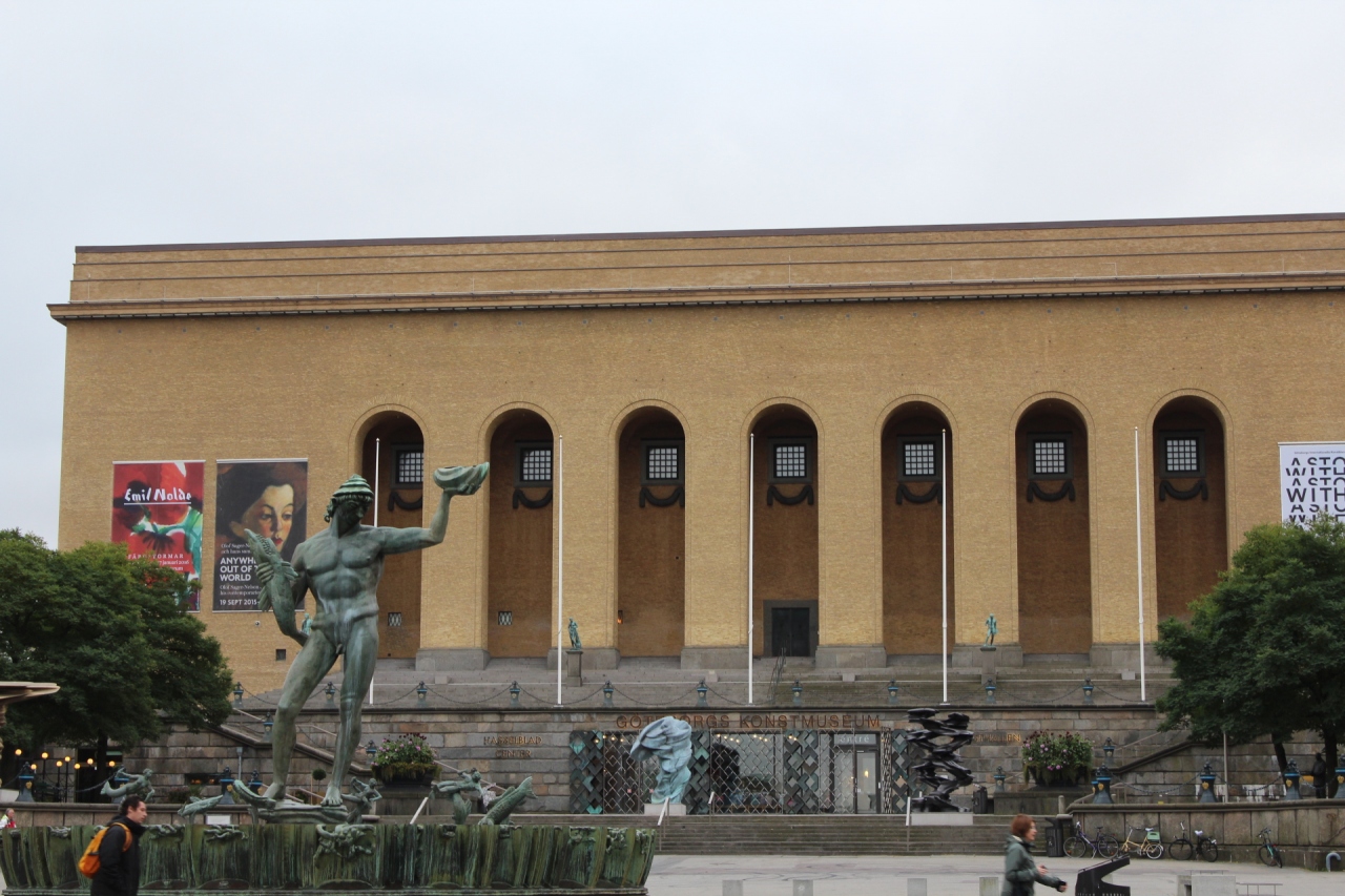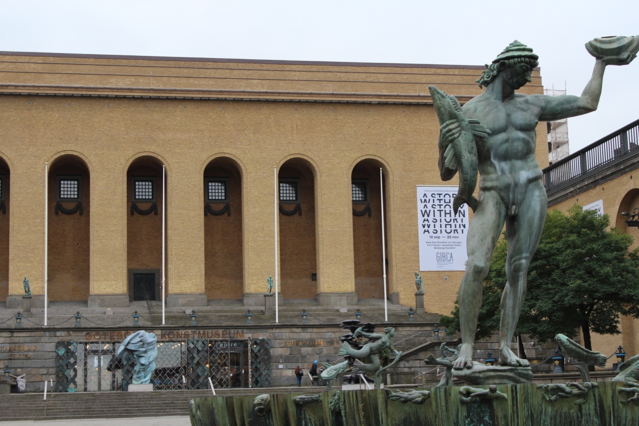 広場は、ヨーテボリ美術館、コンサートホール、劇場、図書館に囲まれている。