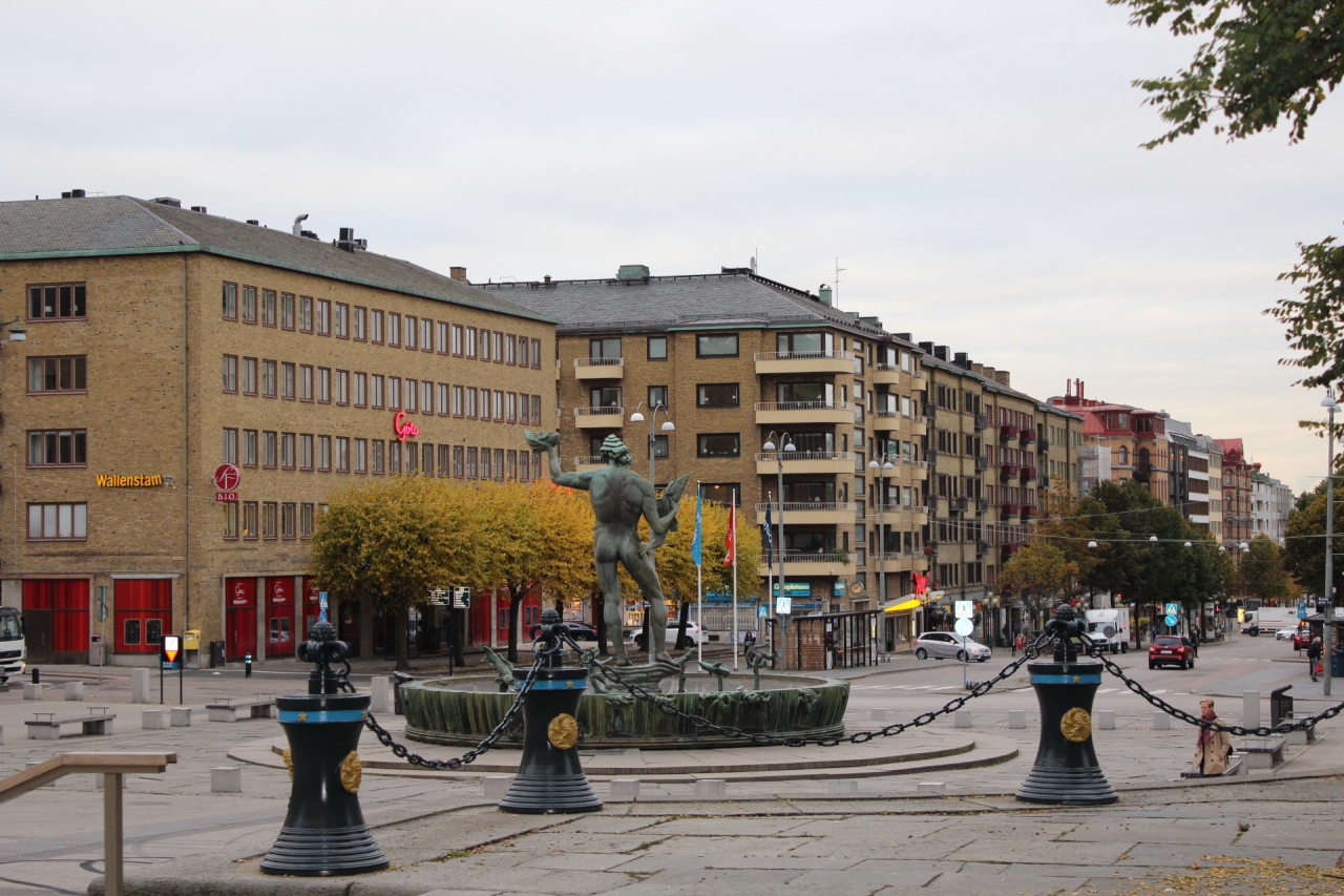ヨーテボリで最も有名なランドマークのひとつ、ポセイドンの像が立っている広場。