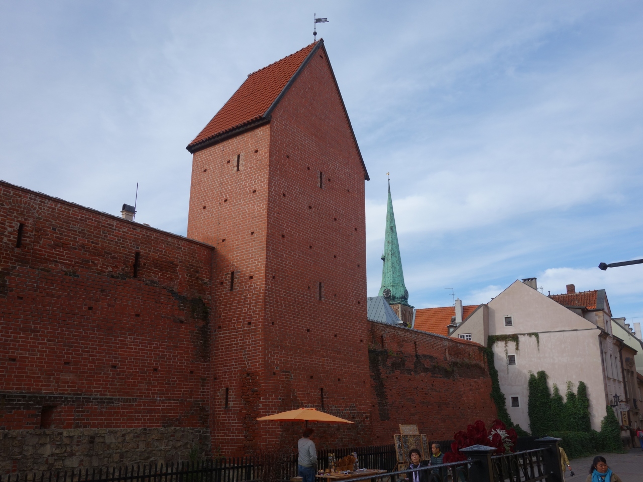リーガもご他聞にもれず城壁都市でした。城壁がぐるりと都市を囲んでいました。その後,だんだん崩れてしまいましたが,スウェーデン門のそばにその名残を見ることができます。レンガ造りの高い壁になっています。上るのがたいへんそう。