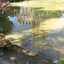 この公園には池があり、池に写る逆さサクラダファミリアの写真を撮ることができますが、朝の光線の具合や水量が少なかったこともあって逆さ写真は今一つの出来でした。